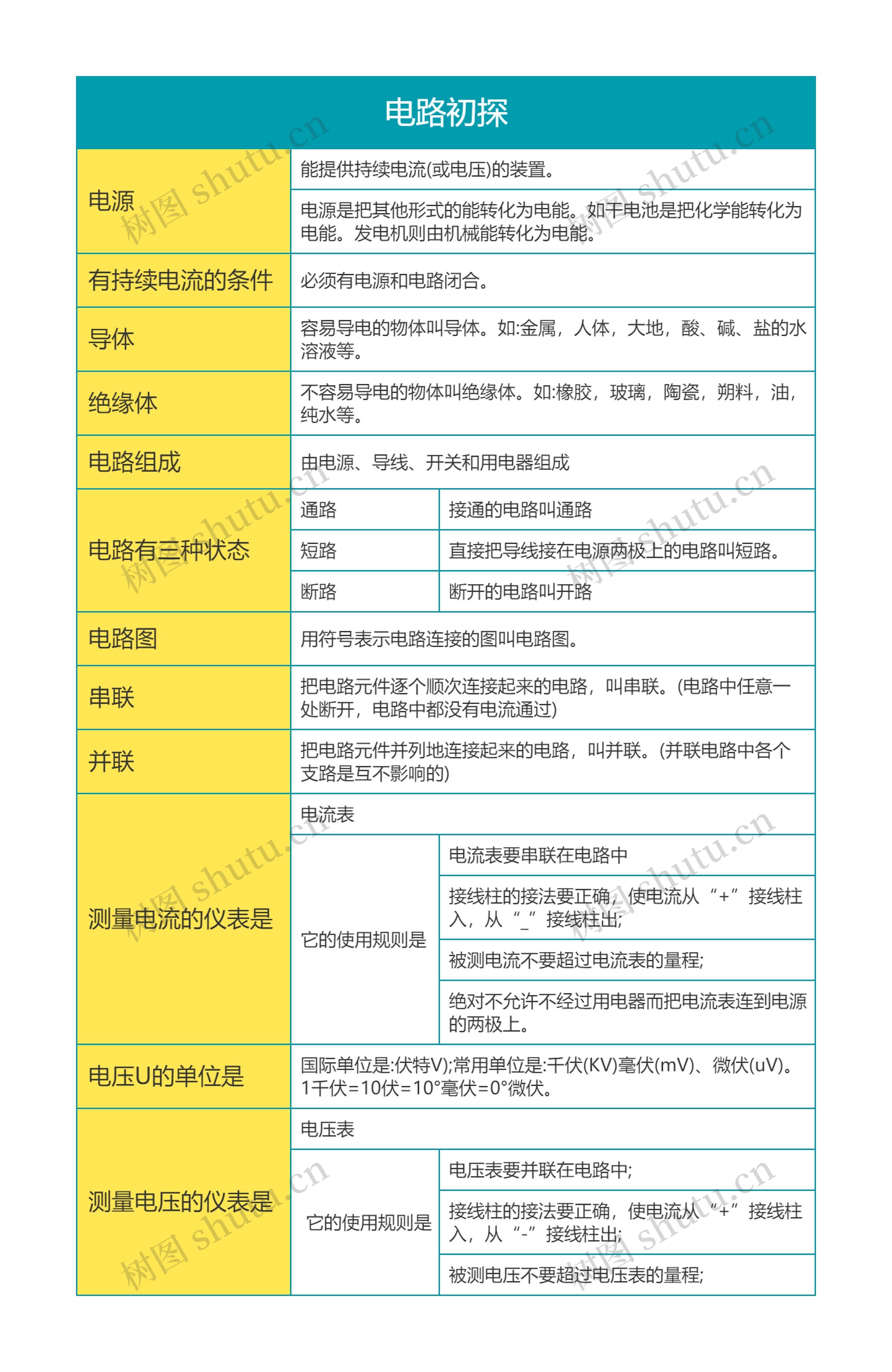 本章节内容主要讲述了电路初探,例如电源和电路组成以及测量电流的仪表和测量电压的仪表等知识