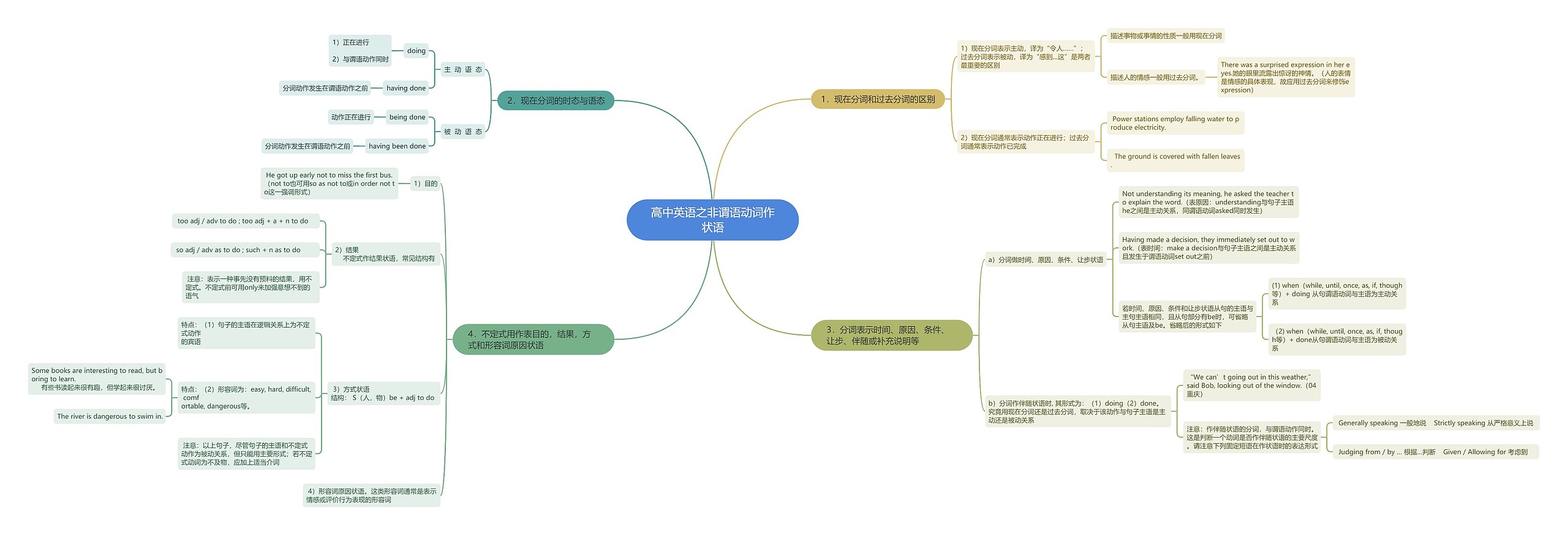 本篇思维导图总结了非谓语动词作状语时的语法知识