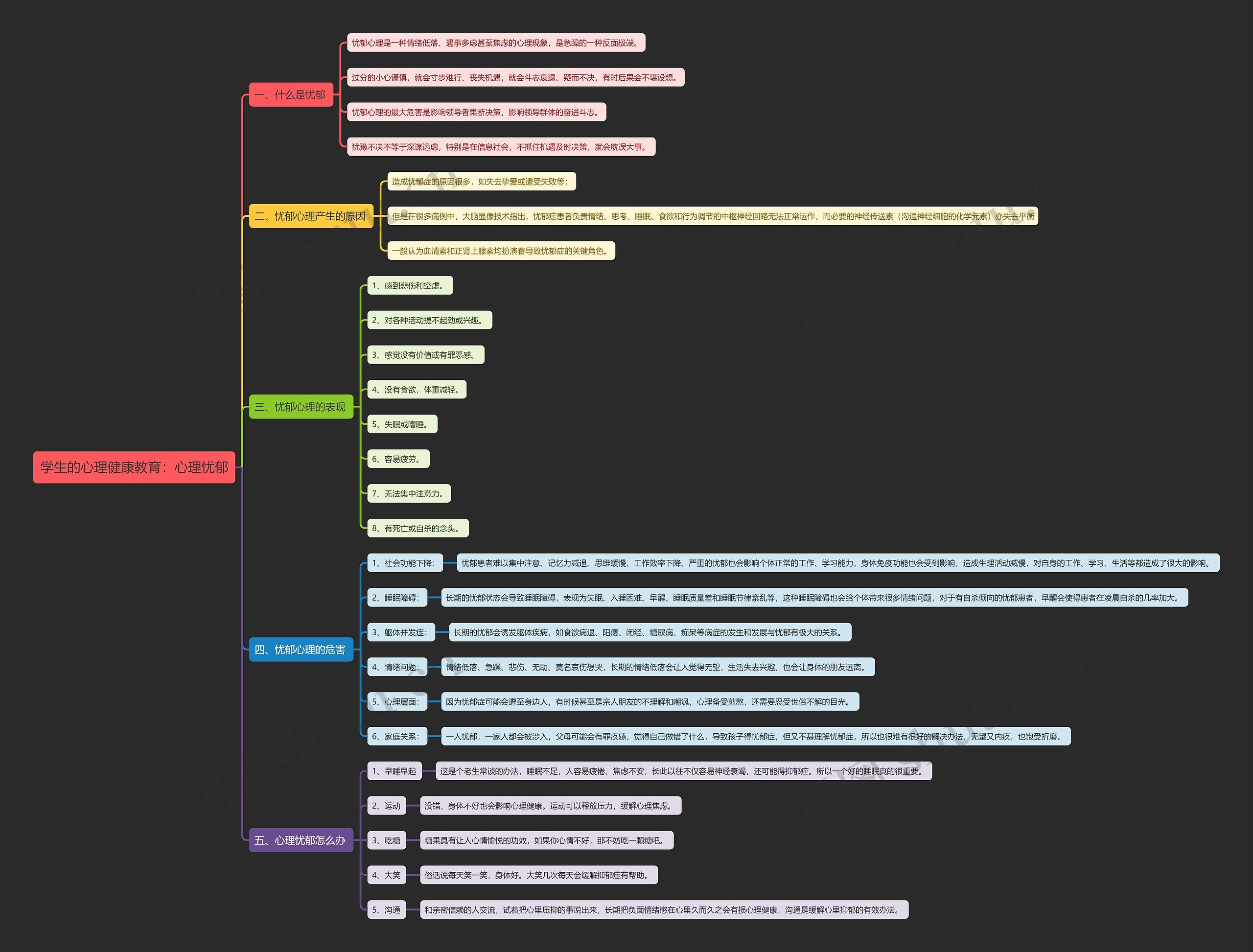 学生的心理健康教育:心理忧郁总结概括思维导图
