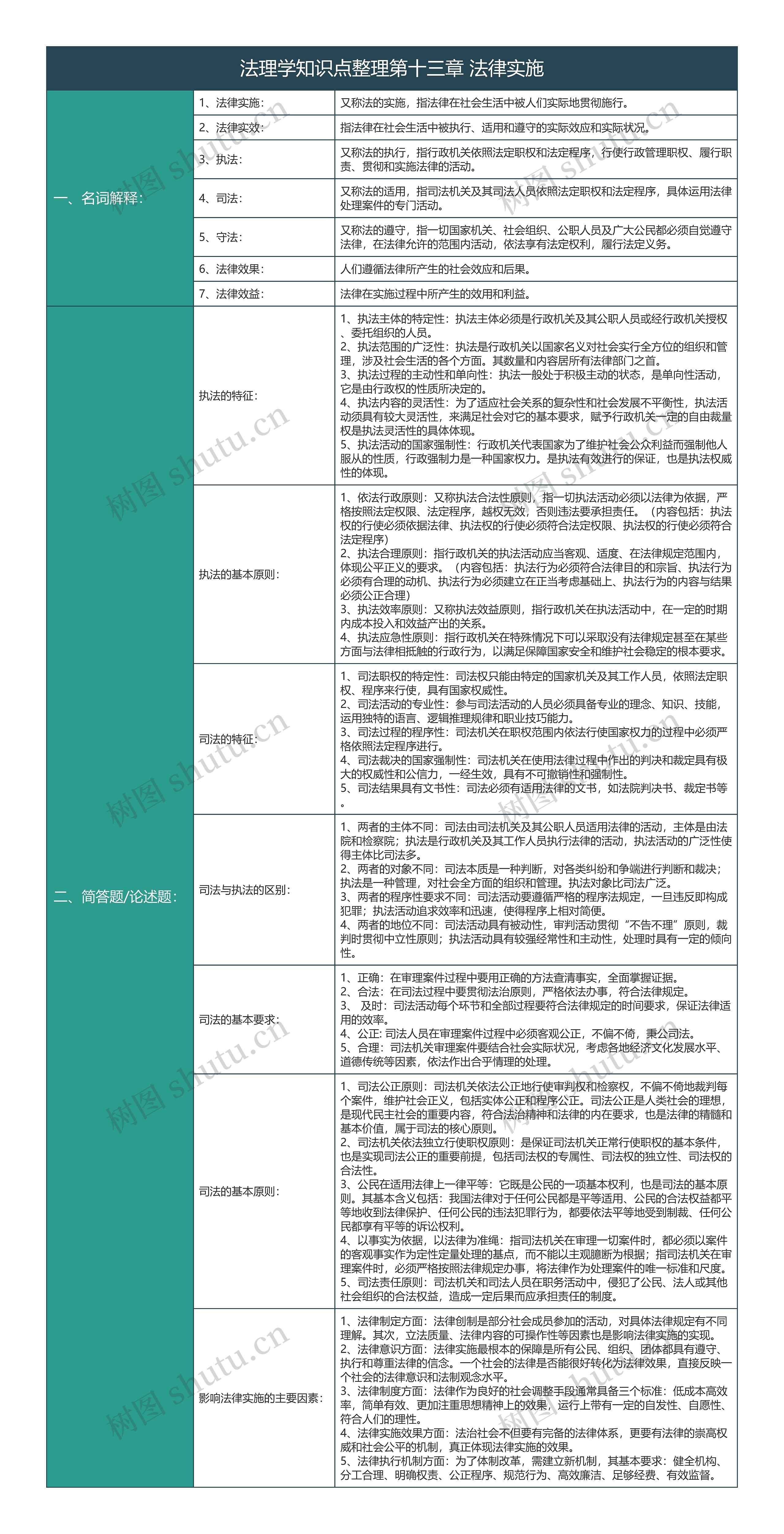 树图思维导图提供《大学法学法理学知识点整理第十三章法律实施知识总结树形表格》在线思维导图免费制作,点击“编辑”按钮,可对《大学法学法理学知识点整理第十三章法律实施知识总结树形表格》进行在线思维导图编辑,本思维导图属于思维导图模板主题,文件编号是:60f3294427a873c9e627e5f6775ab22a