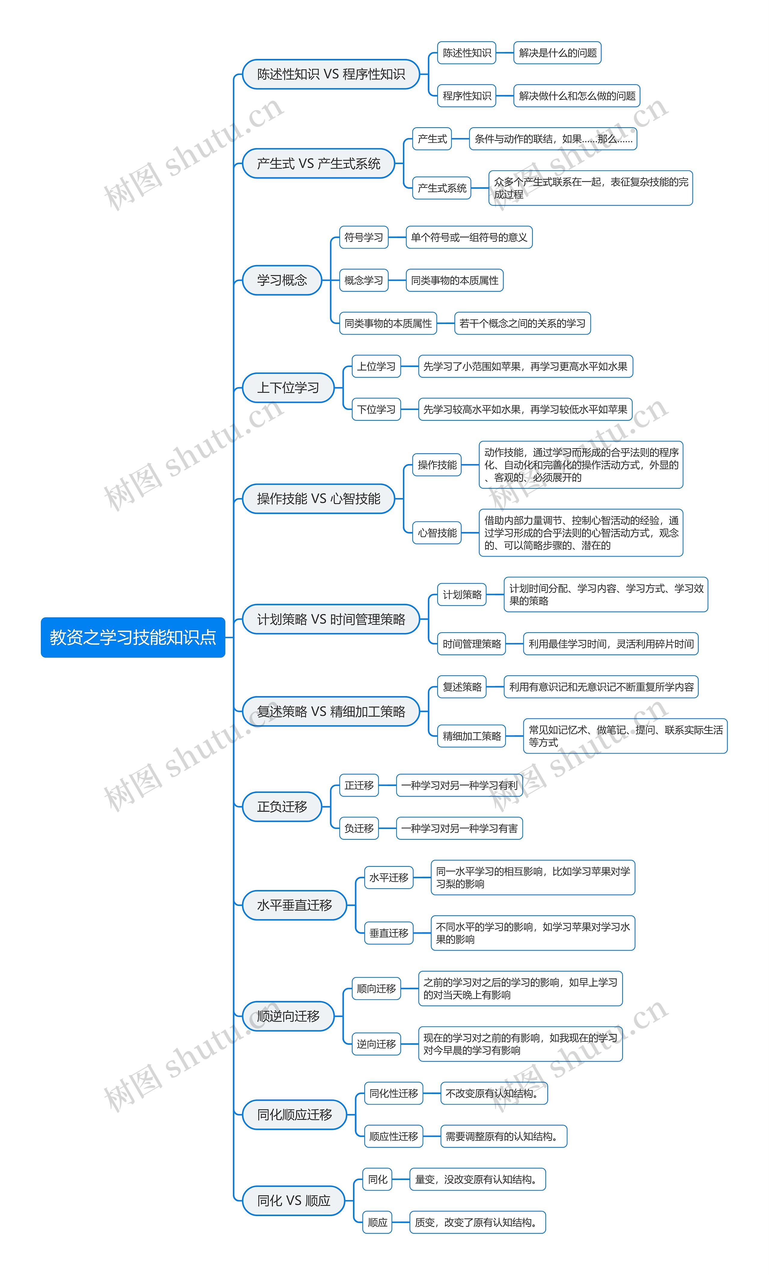 树图思维导图提供《教资之学习技能知识点》在线思维导图免费制作,点击“编辑”按钮,可对《教资之学习技能知识点》进行在线思维导图编辑,本思维导图属于思维导图模板主题,文件编号是:c5e6bd6bca1efb4f392cd692852702d8