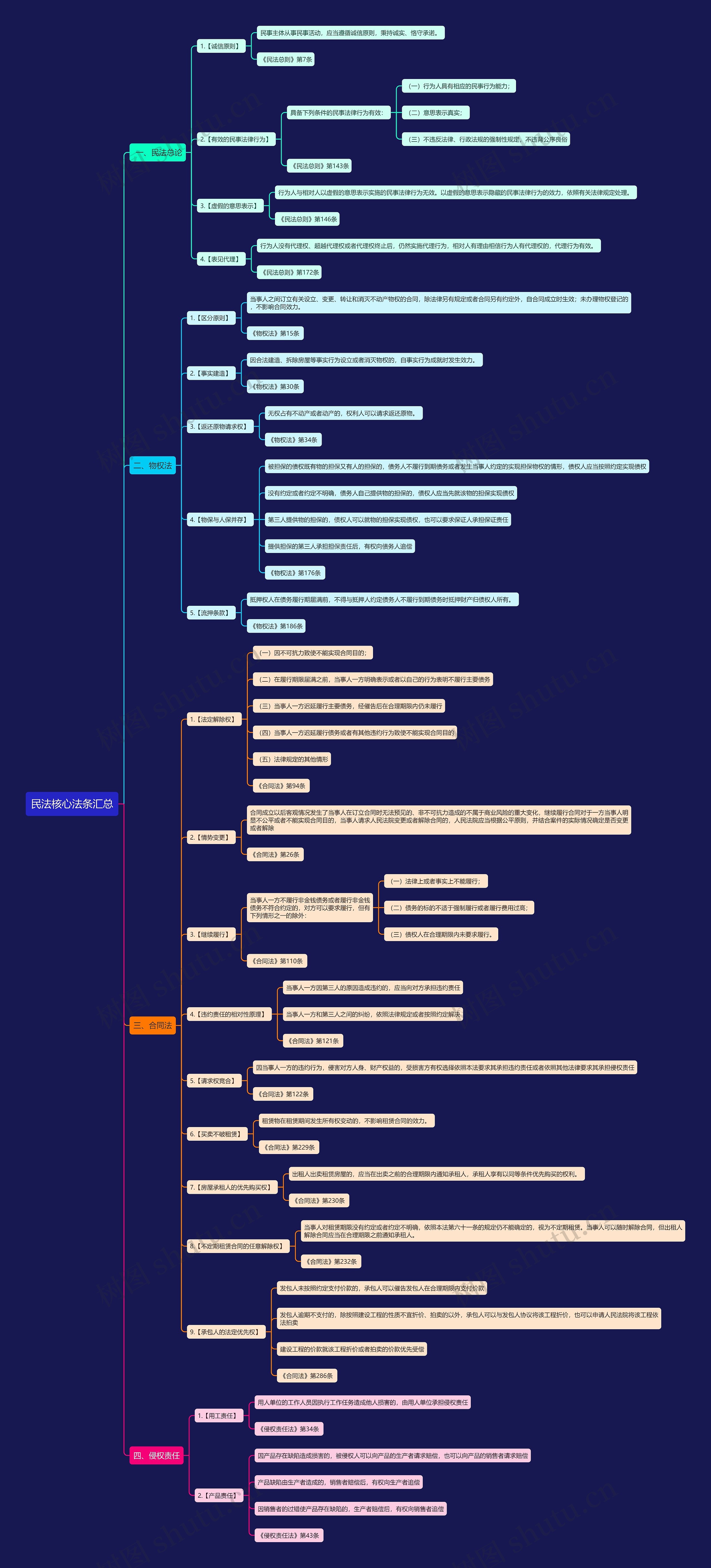 树图思维导图提供《民法核心法条汇总》在线思维导图免费制作,点击“编辑”按钮,可对《民法核心法条汇总》进行在线思维导图编辑,本思维导图属于思维导图模板主题,文件编号是:23c81731283e670a2ef5b18f841bb9dd