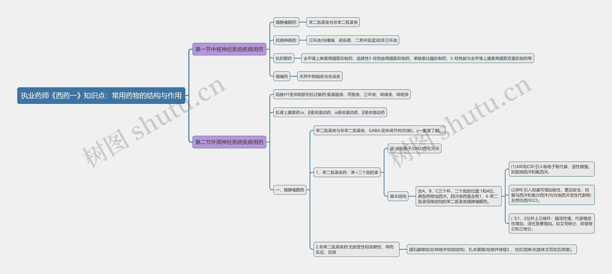 执业药师《西药一》知识点:常用药物的结构与作用思维导图