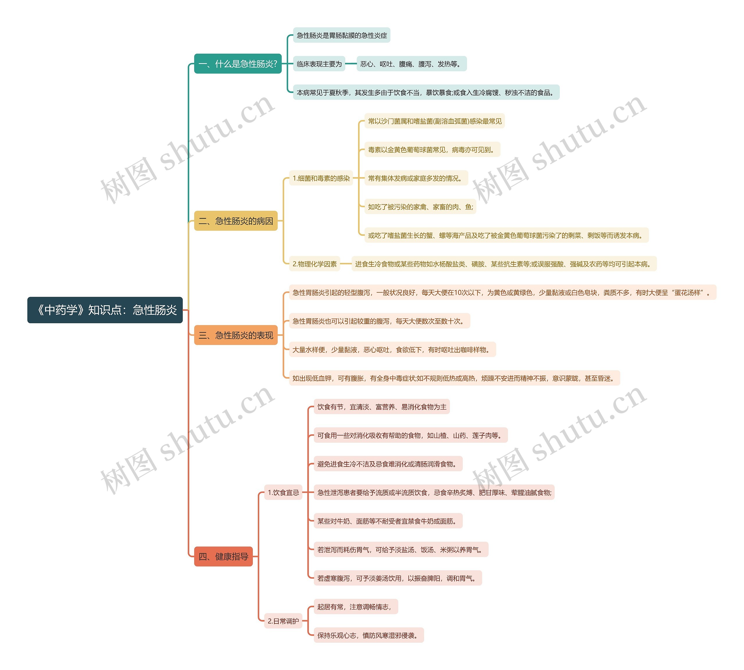 本思维导图主要介绍医学专业《中药学》知识点:急性肠炎