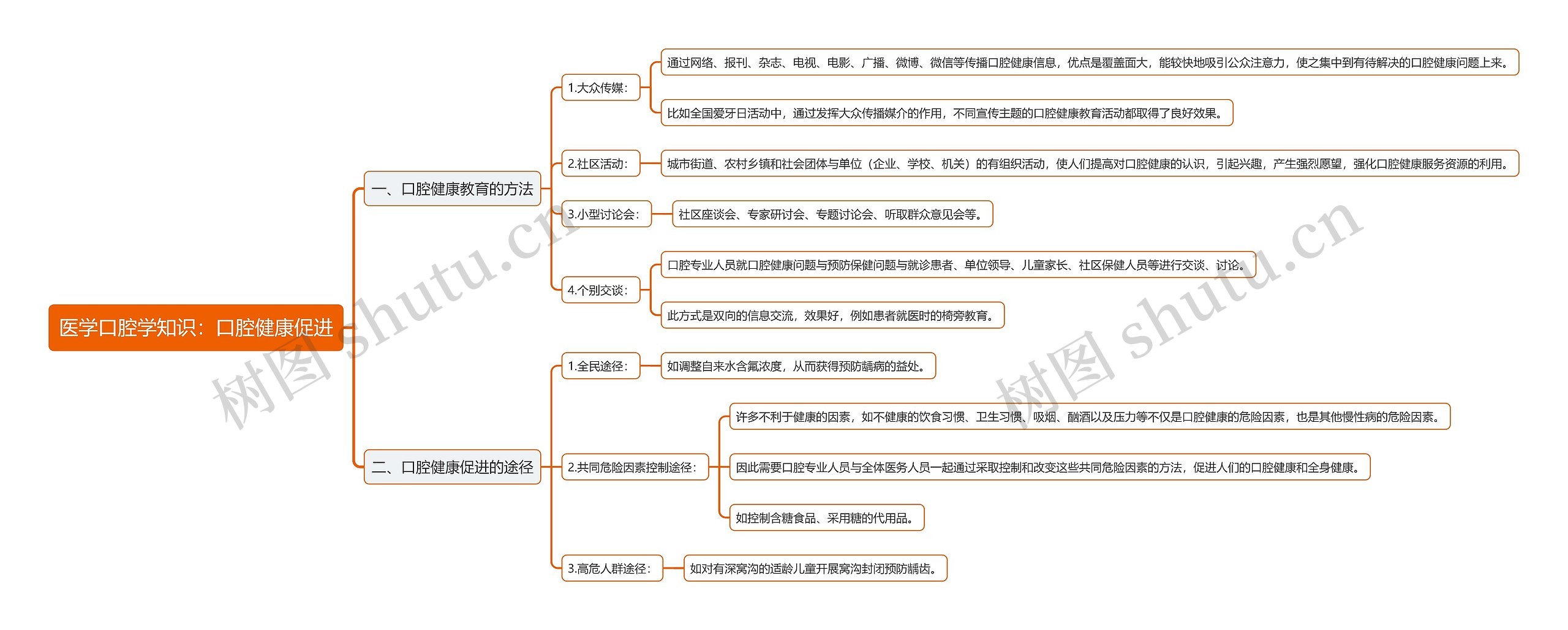 本思维导图主要总结医疗卫生医学口腔学知识:口腔健康促进