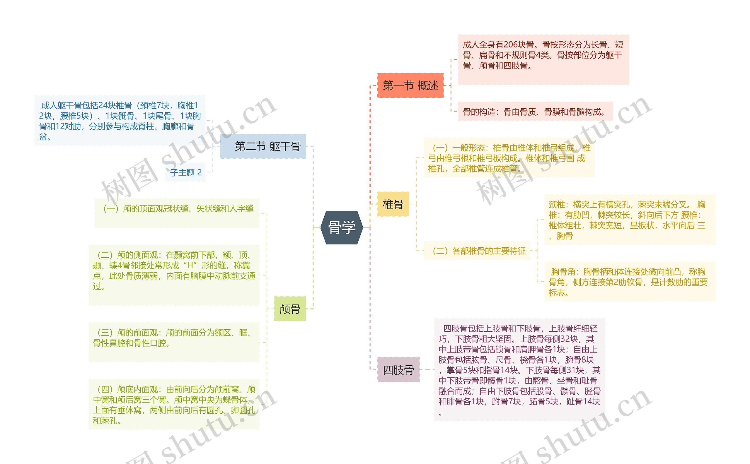 树图思维导图提供《骨学思维导图》在线思维导图免费制作,点击“编辑”按钮,可对《骨学思维导图》进行在线思维导图编辑,本思维导图属于思维导图模板主题,文件编号是:899ce3017eb94730c7d1b610e91d75b7
