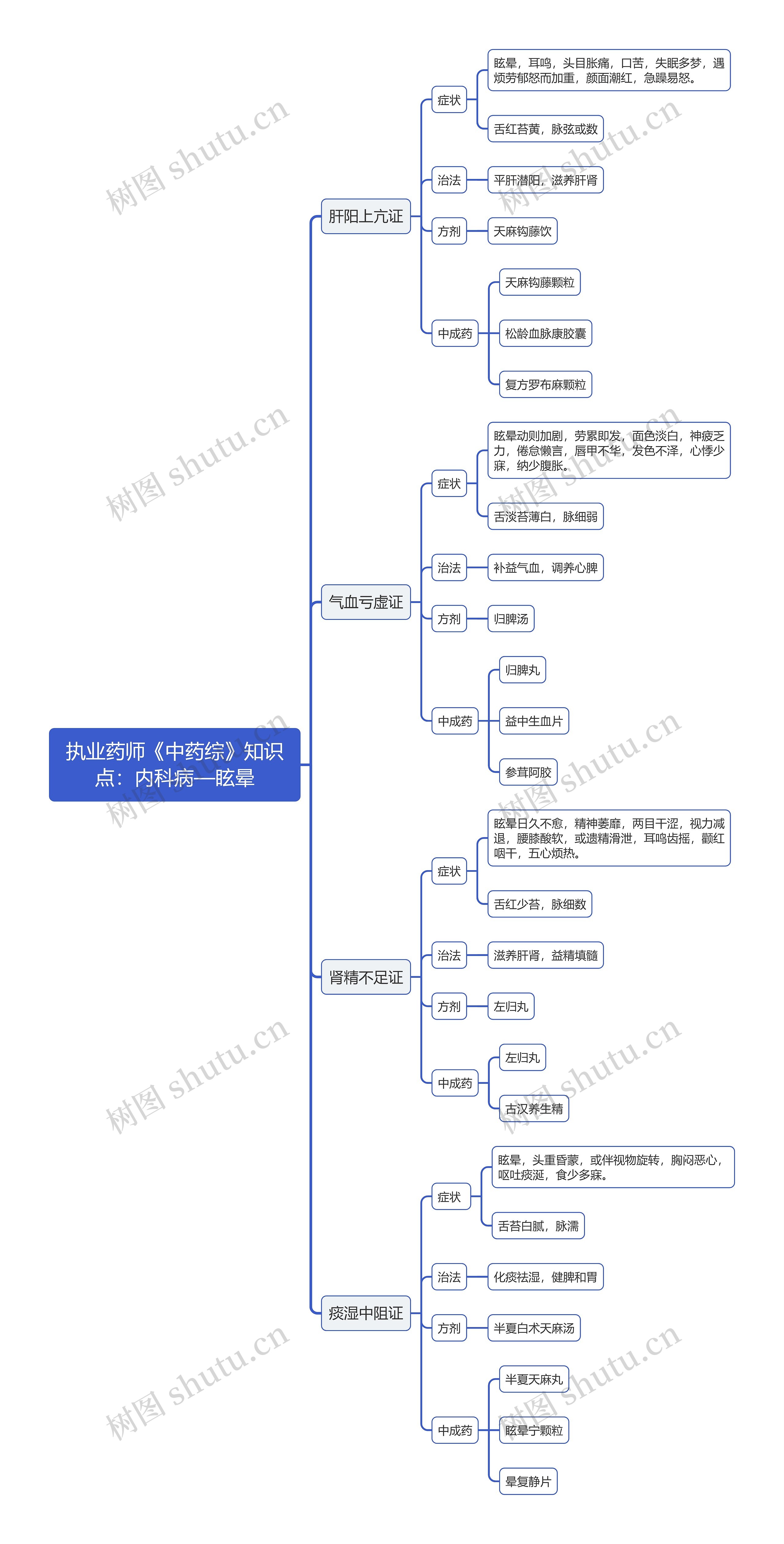 本思维导图主要介绍医学专业执业药师《中药综》知识点:内科病—眩晕
