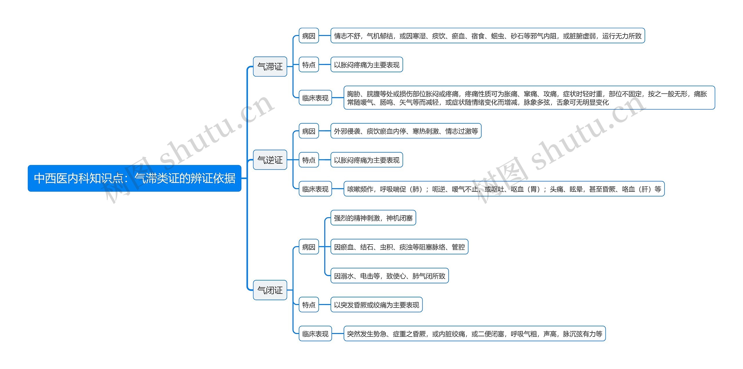 中西医内科知识点:气滞类证的辨证依据思维导图
