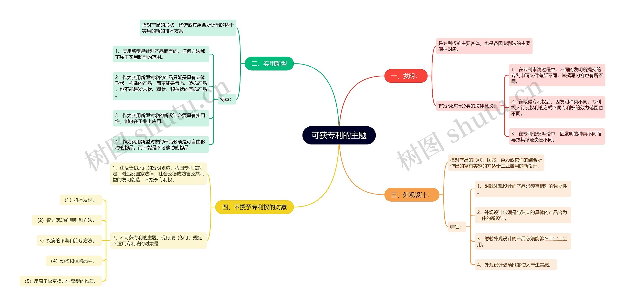 树图思维导图提供《可获专利的主题思维导图》在线思维导图免费制作,点击“编辑”按钮,可对《可获专利的主题思维导图》进行在线思维导图编辑,本思维导图属于思维导图模板主题,文件编号是:f0f5580804fc41130e57539b846f765b