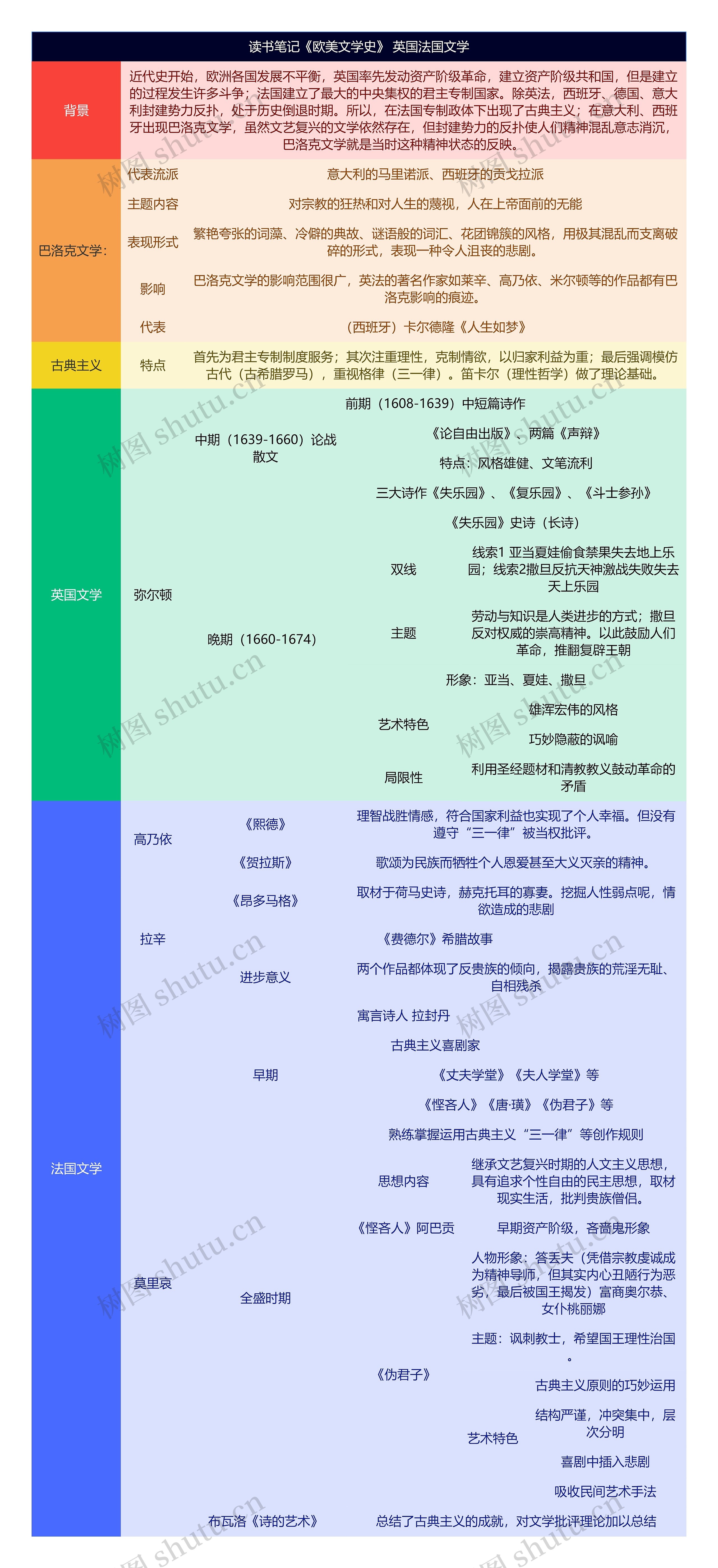 树图思维导图提供《读书笔记《欧美文学史》 英国法国文学》在线思维导图免费制作,点击“编辑”按钮,可对《读书笔记《欧美文学史》 英国法国文学》进行在线思维导图编辑,本思维导图属于思维导图模板主题,文件编号是:843caab7b69b235bcc979b65f334f308
