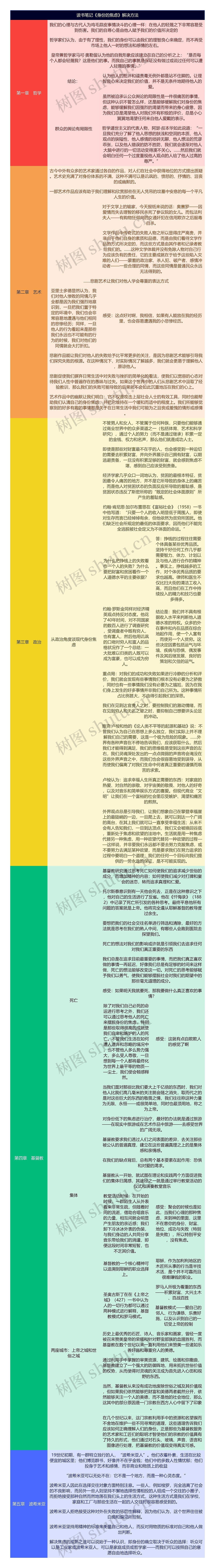 外界观点总是引导我们,让我们想象自己在攀登幸福崖上的最陡峭的一边,一旦爬上去,就可以到达一个广阔的高台,在其上我们就可以一直享受幸福生活;从来不会有人告知我们,一旦到达顶点,我们又会被唤回谷底,重新处于焦虑和欲望的洼地中。生活就是用一种焦虑代替另一种焦虑,用一种欲望代替另一种欲望的过程——这样说,并非要我们永远都不要去努力克服焦虑,或不要努力去满足某种欲望,而是要求我们在努力追求的过程中要明白一个道理:我们的任何一个目标向我们提供的一劳永逸的保证,是不可能实现的。