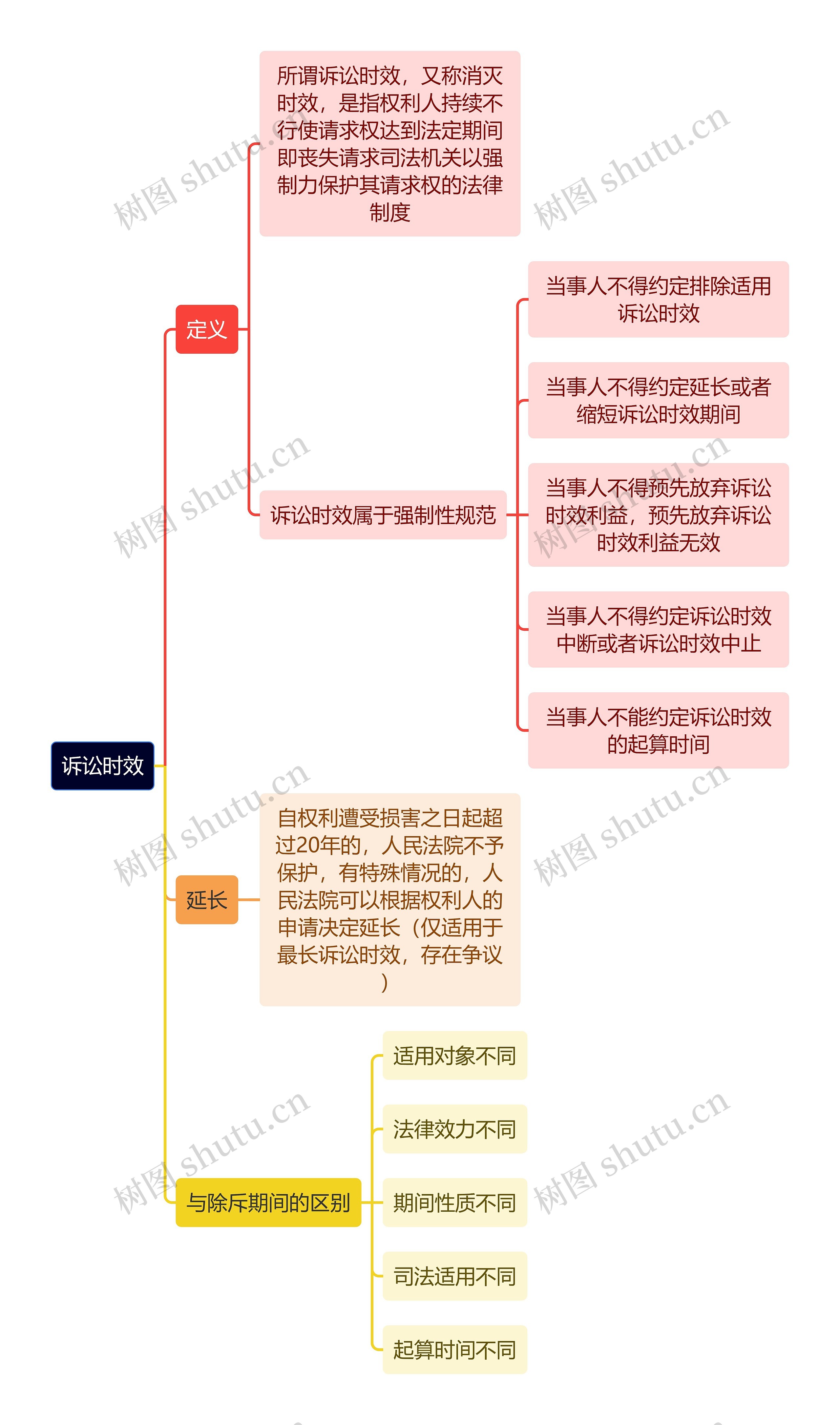树图思维导图提供《诉讼时效》在线思维导图免费制作,点击“编辑”按钮,可对《诉讼时效》进行在线思维导图编辑,本思维导图属于思维导图模板主题,文件编号是:684c2beed473fd35f4e87af9f46754eb