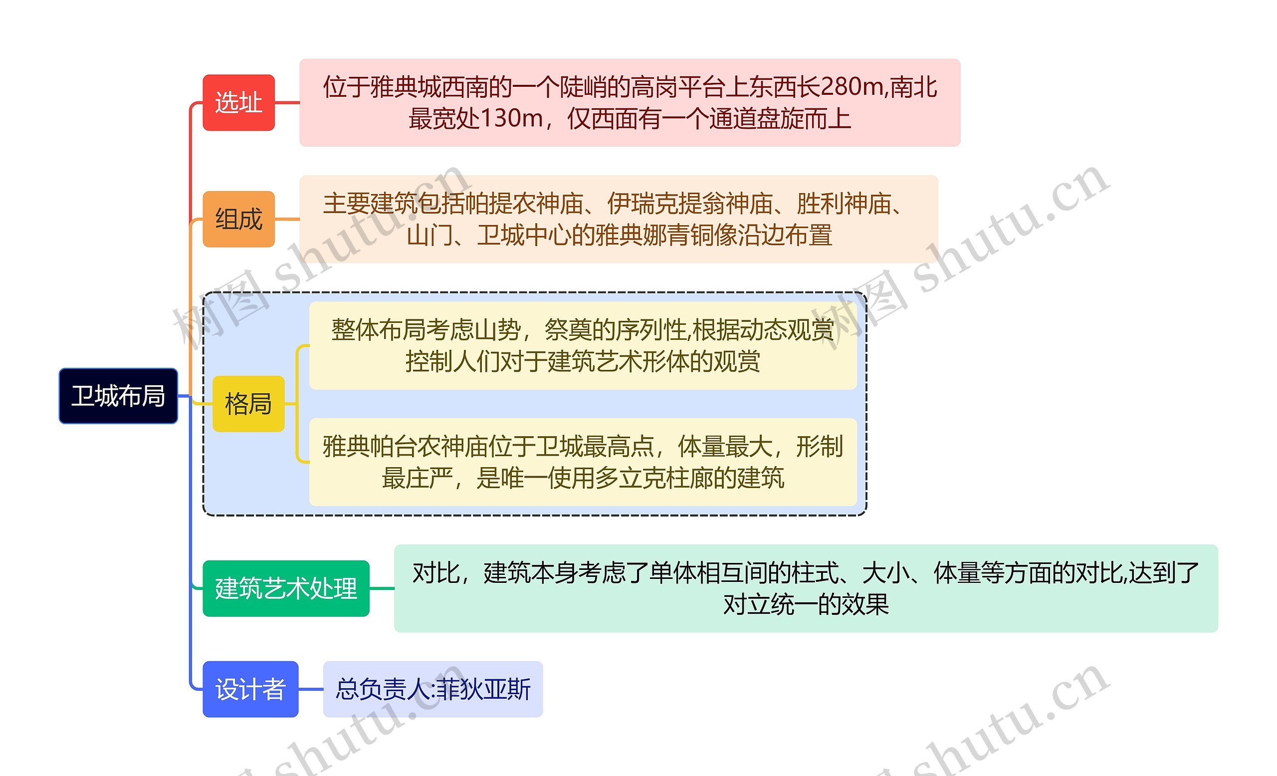树图思维导图提供《建筑学知识卫城布局思维导图》在线思维导图免费制作,点击“编辑”按钮,可对《建筑学知识卫城布局思维导图》进行在线思维导图编辑,本思维导图属于思维导图模板主题,文件编号是:0c8e3d364bbe011062d4f5e78ff89b94
