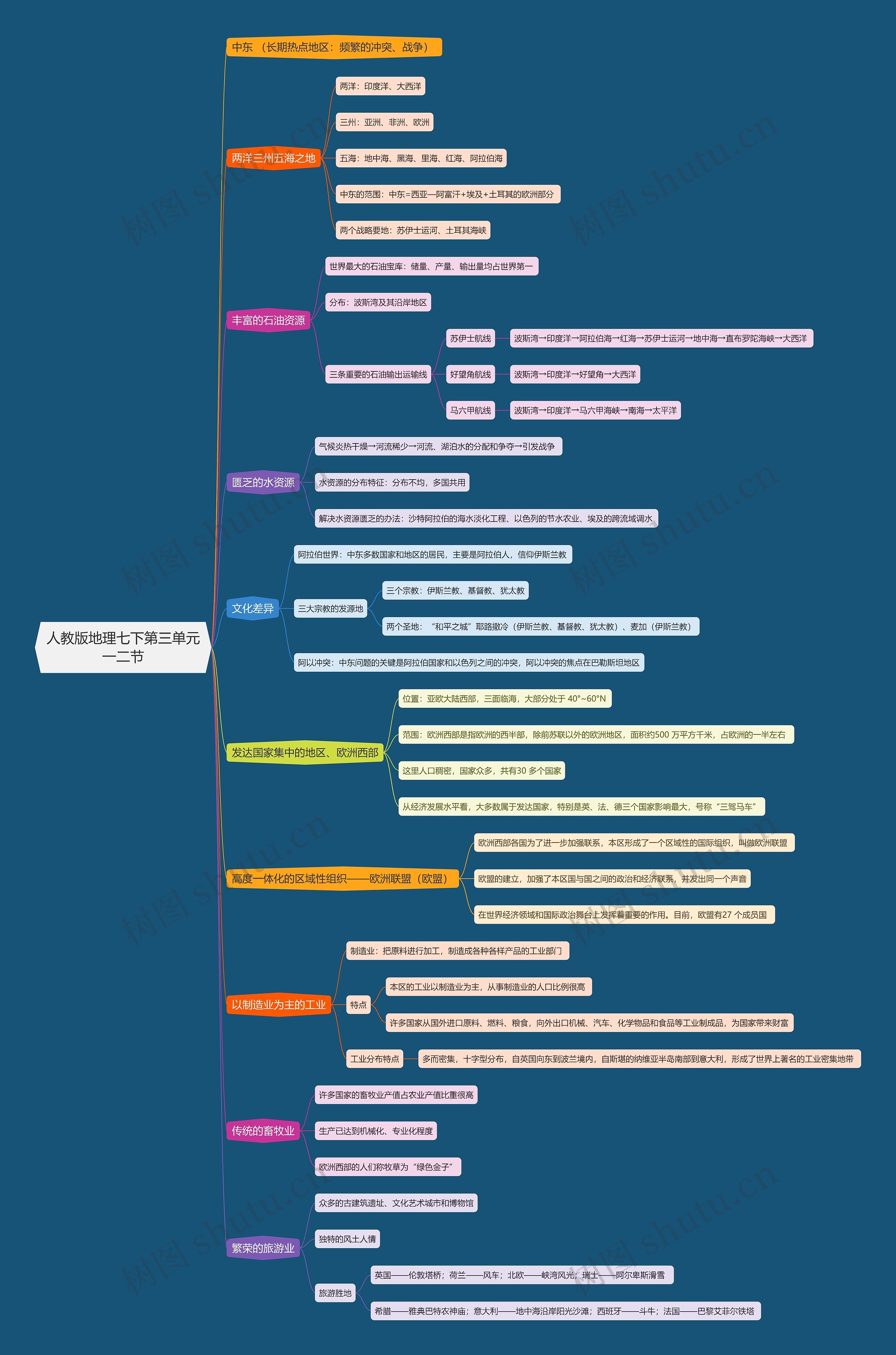 人教版地理七下第三单元一二节思维导图