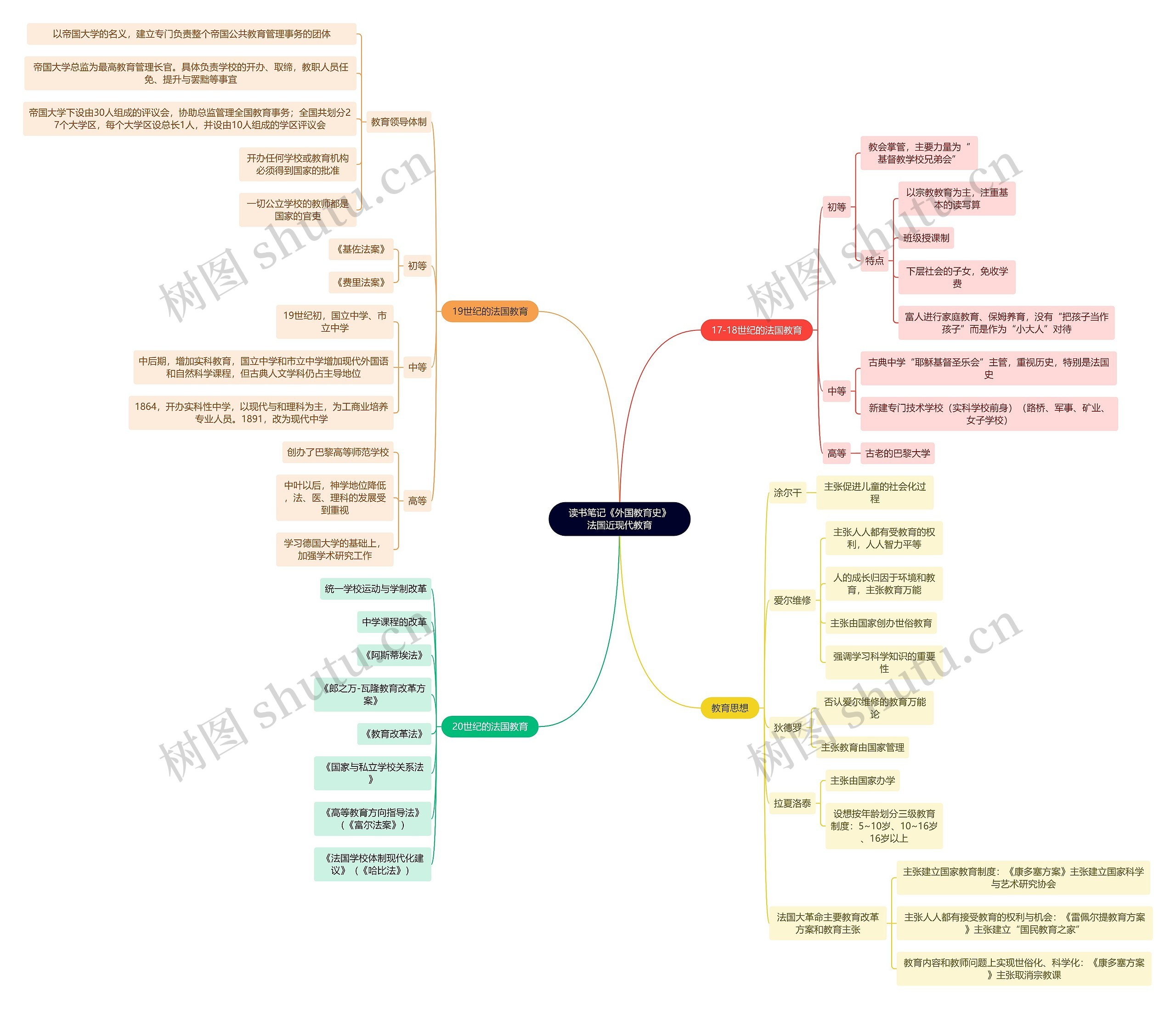 树图思维导图提供《读书笔记《外国教育史》法国近现代教育》在线思维导图免费制作,点击“编辑”按钮,可对《读书笔记《外国教育史》法国近现代教育》进行在线思维导图编辑,本思维导图属于思维导图模板主题,文件编号是:3f7df4885fe90a2bea48737cf1a9bec3