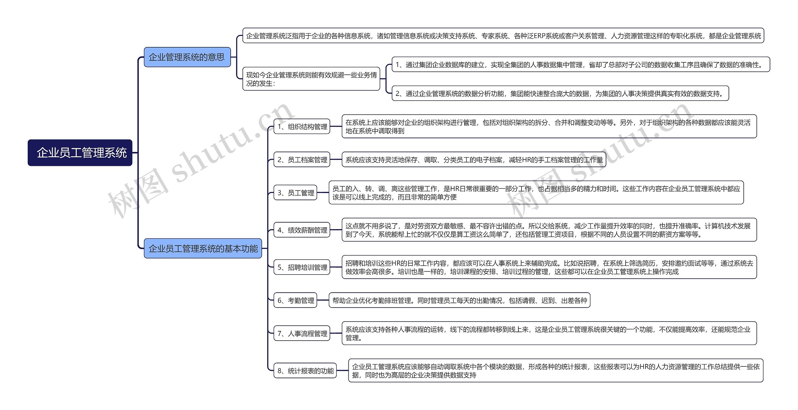 树图思维导图提供《 企业员工管理系统》在线思维导图免费制作,点击“编辑”按钮,可对《 企业员工管理系统》进行在线思维导图编辑,本思维导图属于思维导图模板主题,文件编号是:35bf41b28c521f13b00610dc84328389
