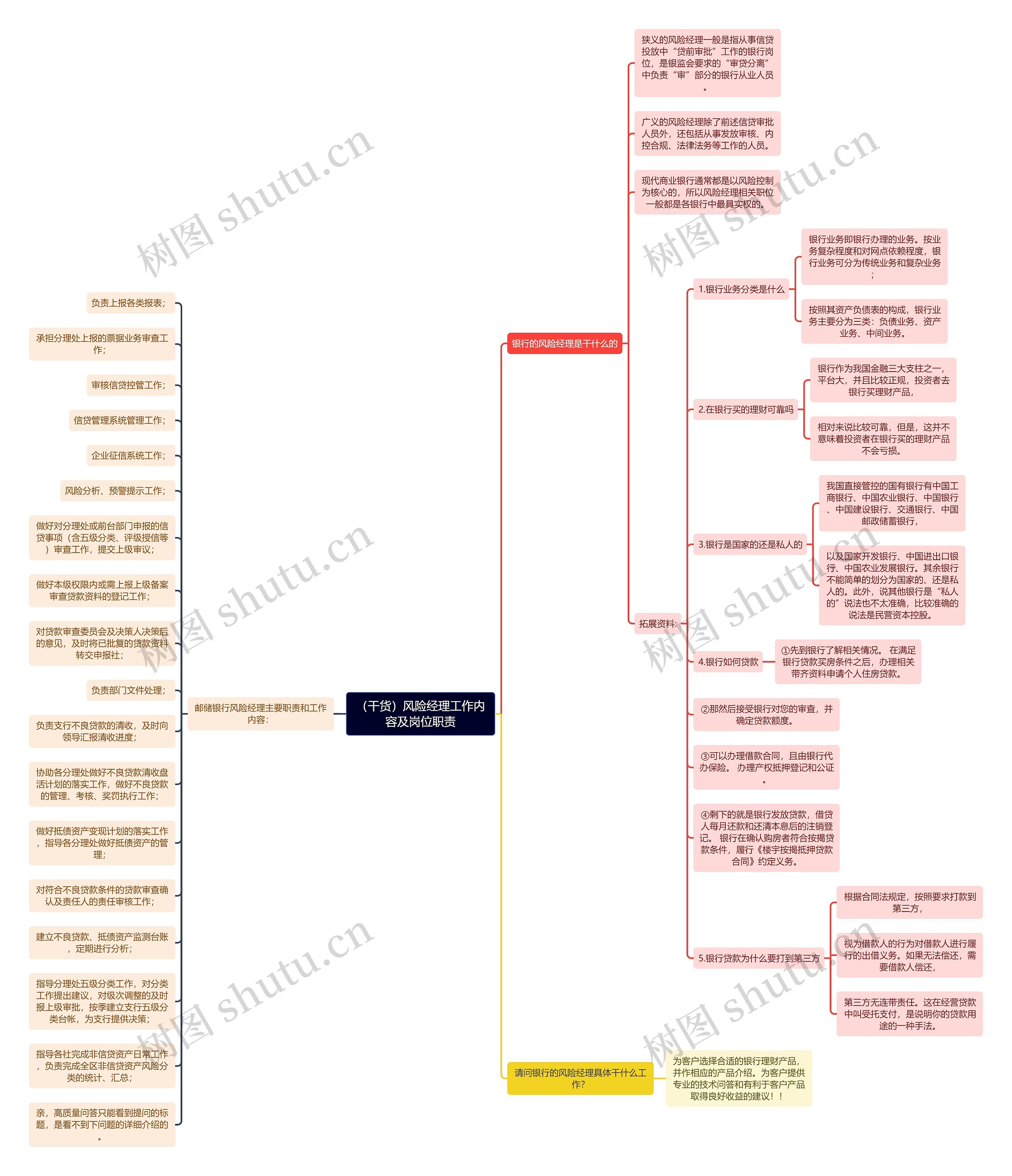 树图思维导图提供《(干货)风险经理工作内容及岗位职责思维导图》在线思维导图免费制作,点击“编辑”按钮,可对《(干货)风险经理工作内容及岗位职责思维导图》进行在线思维导图编辑,本思维导图属于思维导图模板主题,文件编号是:a13abe52ff30c706e78e9271668a96ec