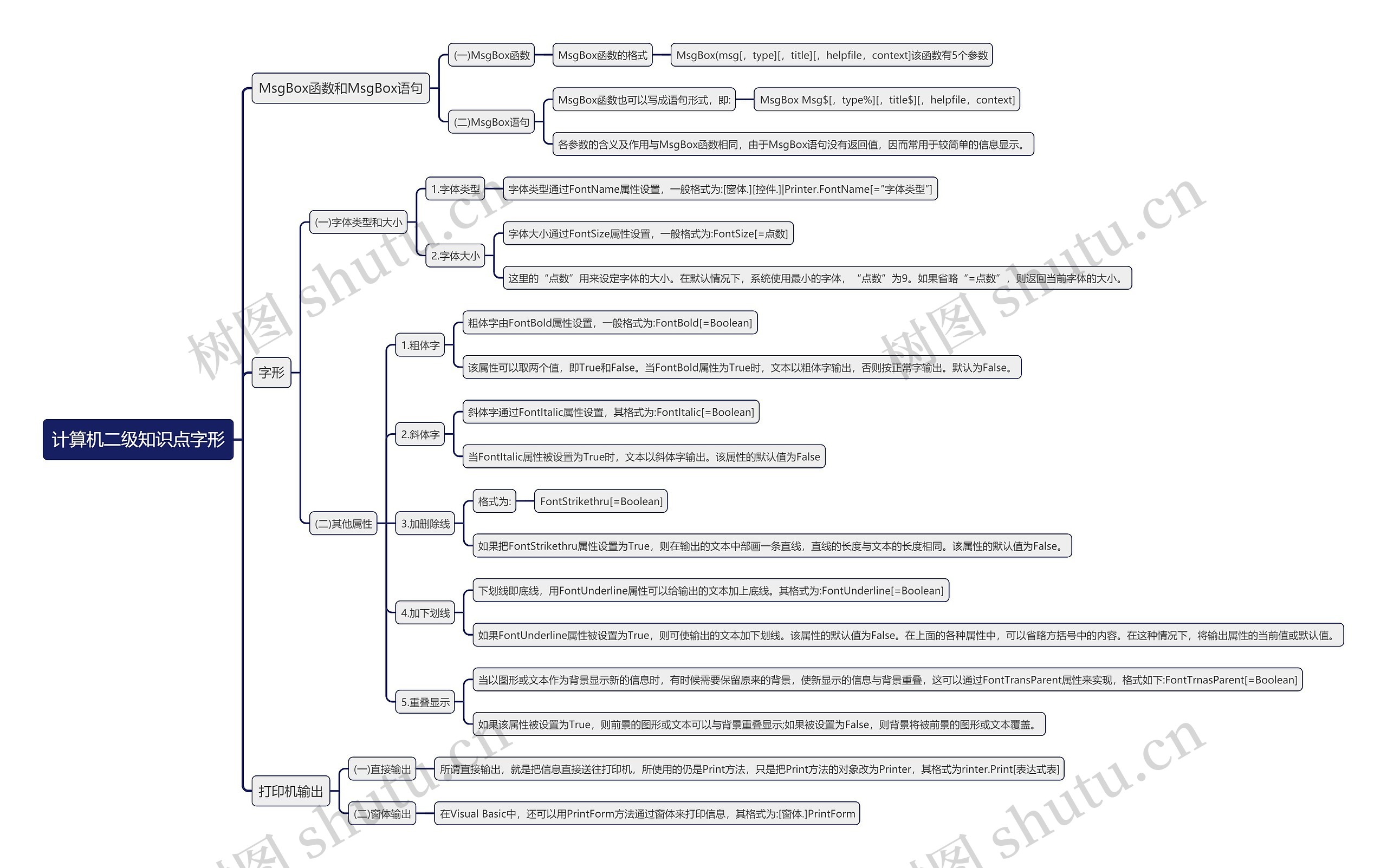 树图思维导图提供《计算机二级知识点字形思维导图》在线思维导图免费制作,点击“编辑”按钮,可对《计算机二级知识点字形思维导图》进行在线思维导图编辑,本思维导图属于思维导图模板主题,文件编号是:cea7f7840a46275fa2add0d95baa5f91