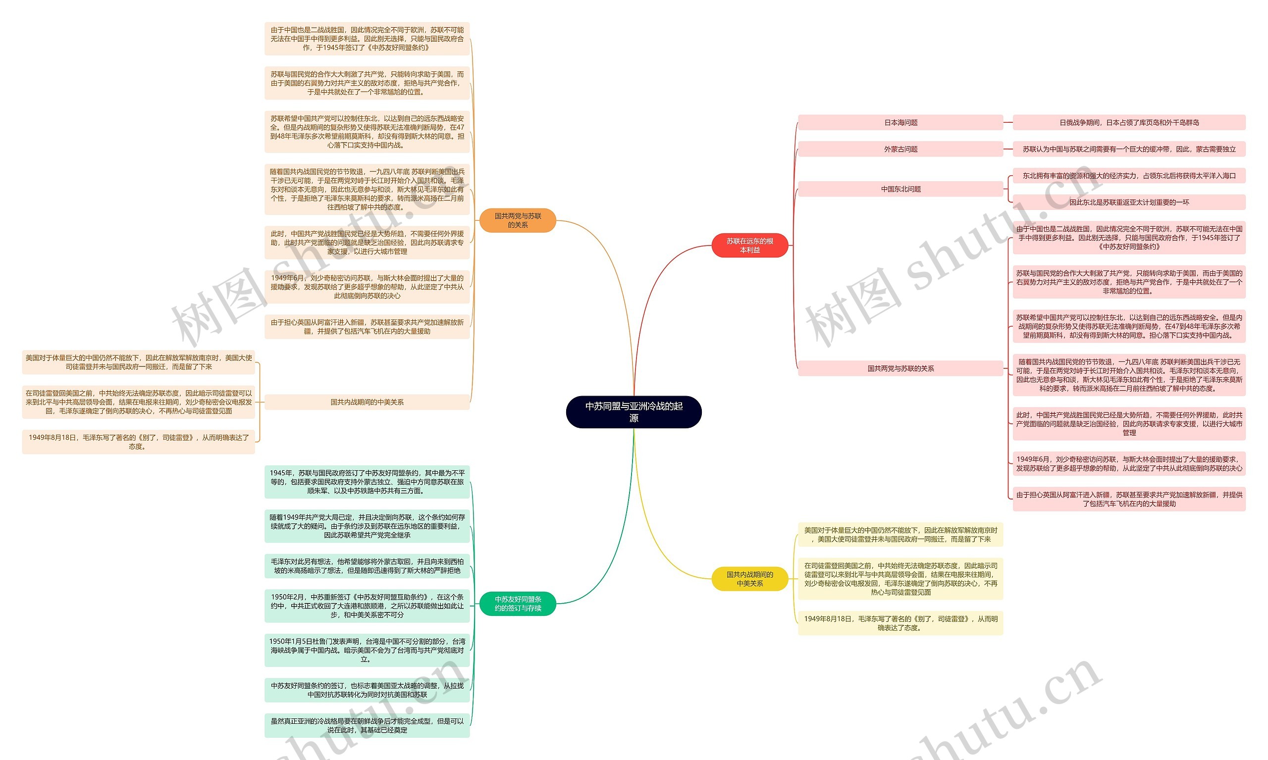 由于中国也是二战战胜国,因此情况完全不同于欧洲,苏联不可能无法在中国手中得到更多利益。因此别无选择,只能与国民政府合作,于1945年签订了《中苏友好同盟条约》
