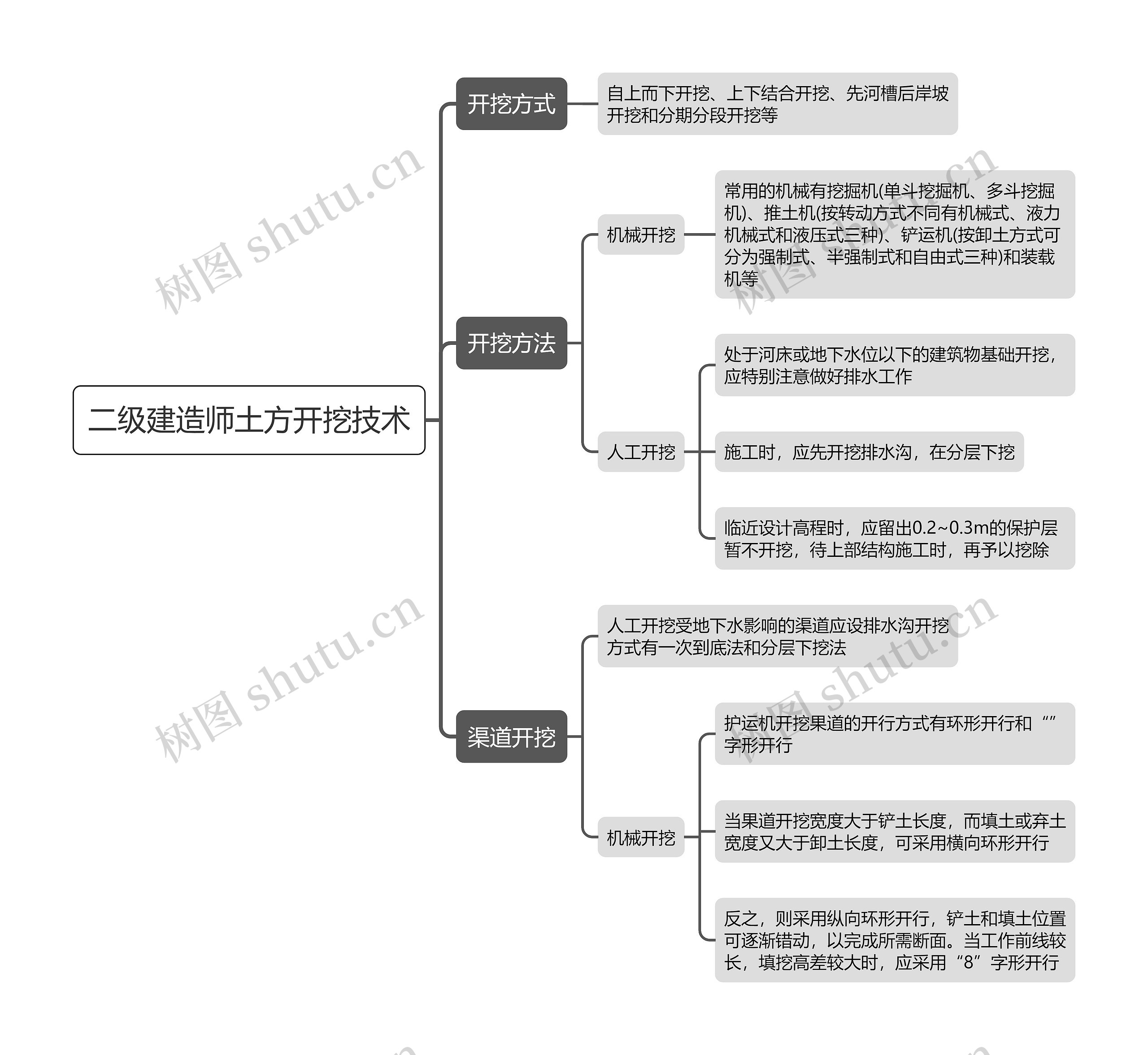 树图思维导图提供《二级建造师土方开挖技术思维导图》在线思维导图免费制作,点击“编辑”按钮,可对《二级建造师土方开挖技术思维导图》进行在线思维导图编辑,本思维导图属于思维导图模板主题,文件编号是:fef217090a151af9461ef1b342c10b41