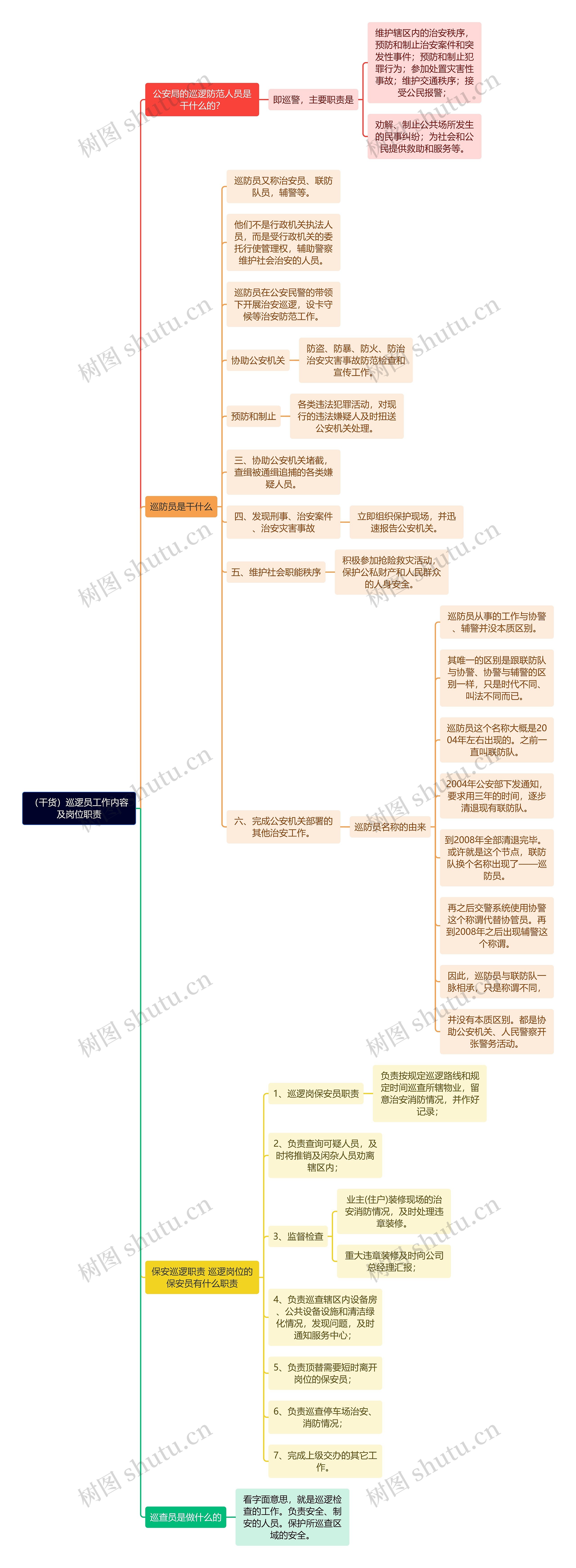 树图思维导图提供《(干货)巡逻员工作内容及岗位职责思维导图》在线思维导图免费制作,点击“编辑”按钮,可对《(干货)巡逻员工作内容及岗位职责思维导图》进行在线思维导图编辑,本思维导图属于思维导图模板主题,文件编号是:26fc94aca74bc36497793acd15141394