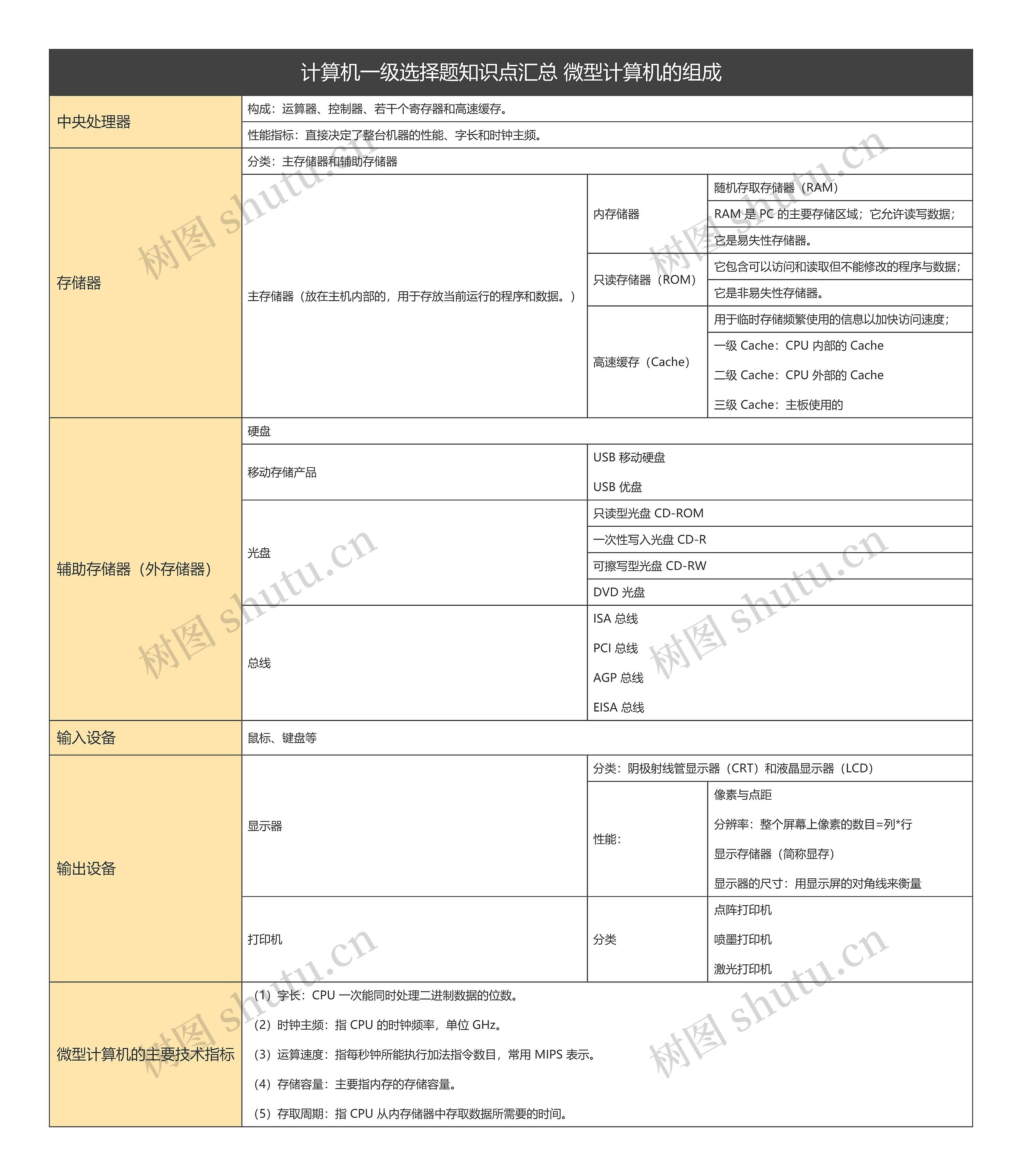 计算机一级选择题知识点汇总 微型计算机的组成思维导图