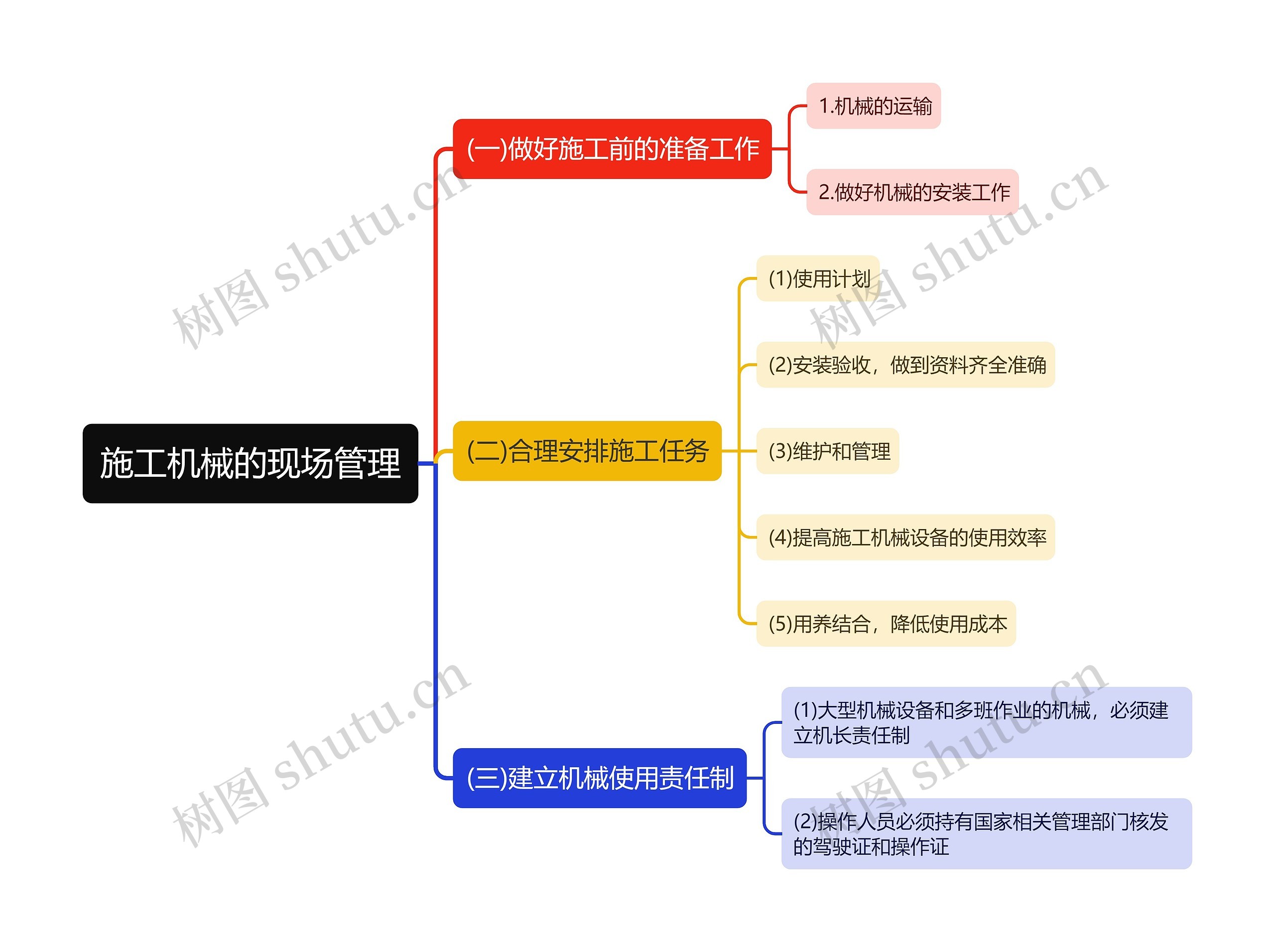 树图思维导图提供《施工机械的现场管理》在线思维导图免费制作,点击“编辑”按钮,可对《施工机械的现场管理》进行在线思维导图编辑,本思维导图属于思维导图模板主题,文件编号是:a39e6b5f35d89359128aa73c393e79eb
