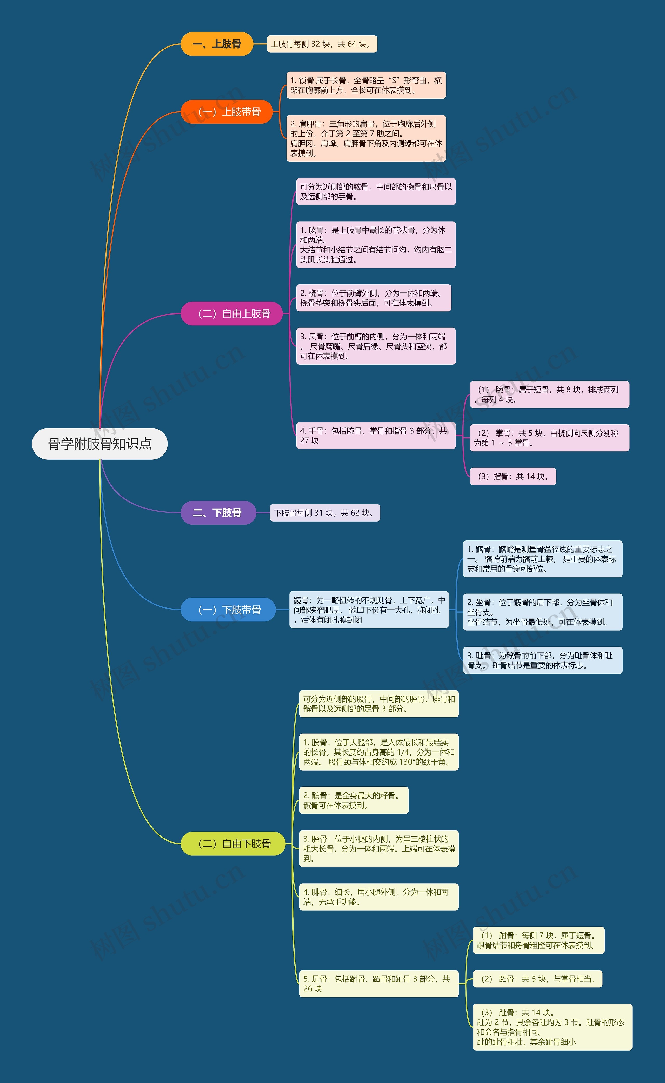 4. 腓骨:细长,居小腿外侧,分为一体和两端,无承重功能。