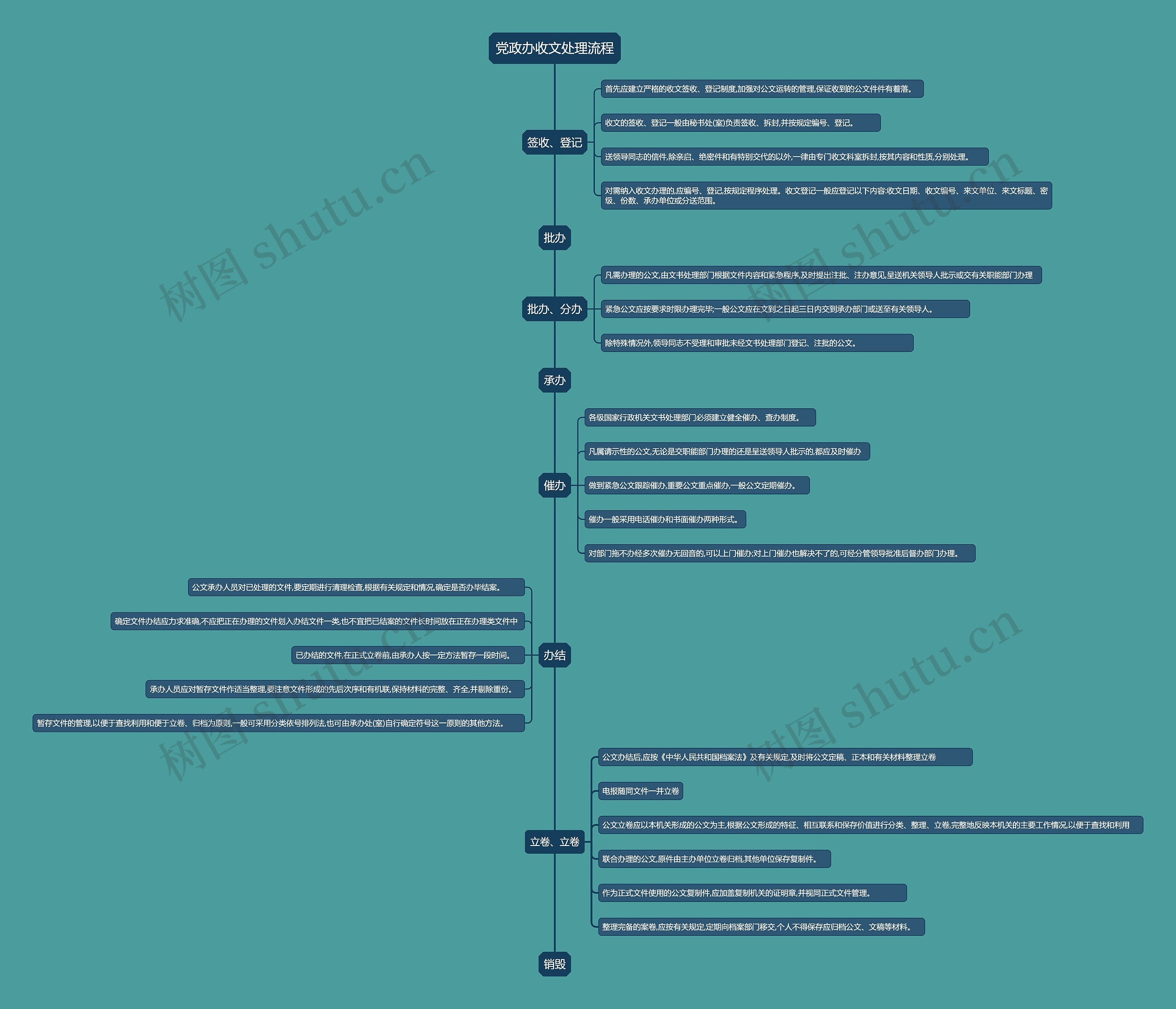 树图思维导图提供《党政办收文处理流程》在线思维导图免费制作,点击“编辑”按钮,可对《党政办收文处理流程》进行在线思维导图编辑,本思维导图属于思维导图模板主题,文件编号是:ba69f4e622323d937df12c6ca9ab491e