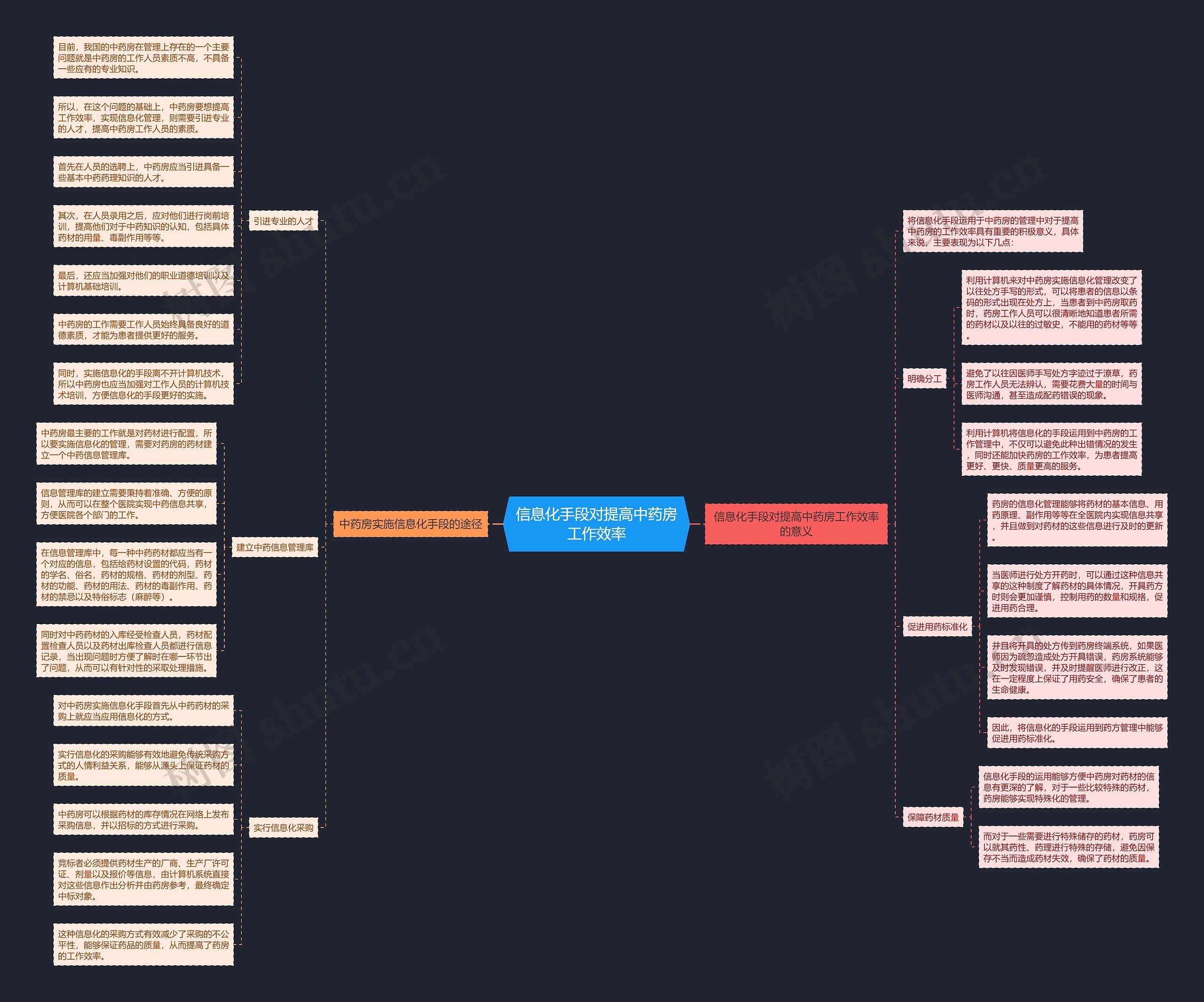 树图思维导图提供《信息化手段对提高中药房工作效率》在线思维导图免费制作,点击“编辑”按钮,可对《信息化手段对提高中药房工作效率》进行在线思维导图编辑,本思维导图属于思维导图模板主题,文件编号是:6c53624dbd2dbf1d46839b10cd71ef05