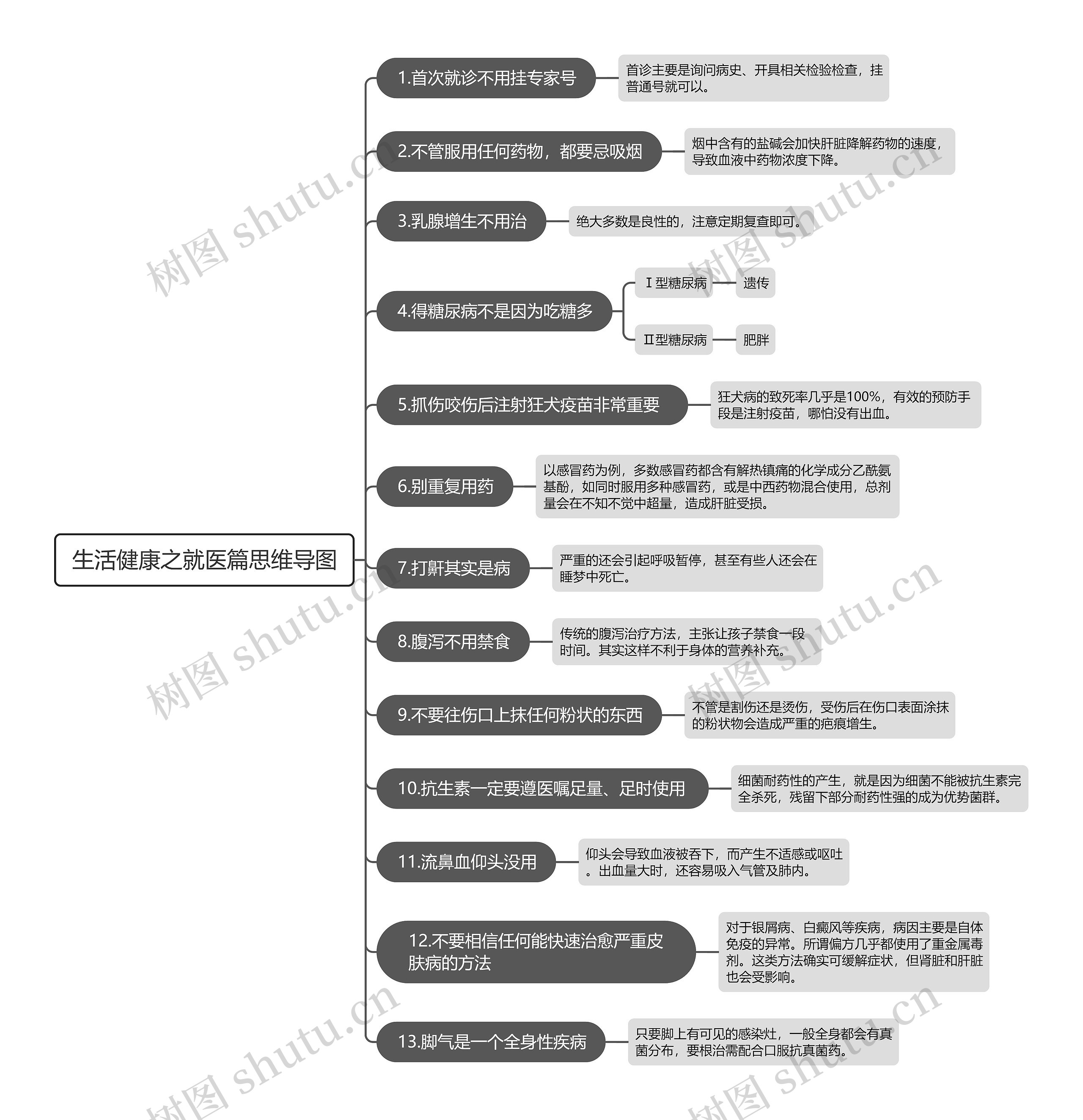 树图思维导图提供《生活健康之就医篇思维导图》在线思维导图免费制作,点击“编辑”按钮,可对《生活健康之就医篇思维导图》进行在线思维导图编辑,本思维导图属于思维导图模板主题,文件编号是:f88cd36e2baadd3f3ed12d7c5d8fd3f3
