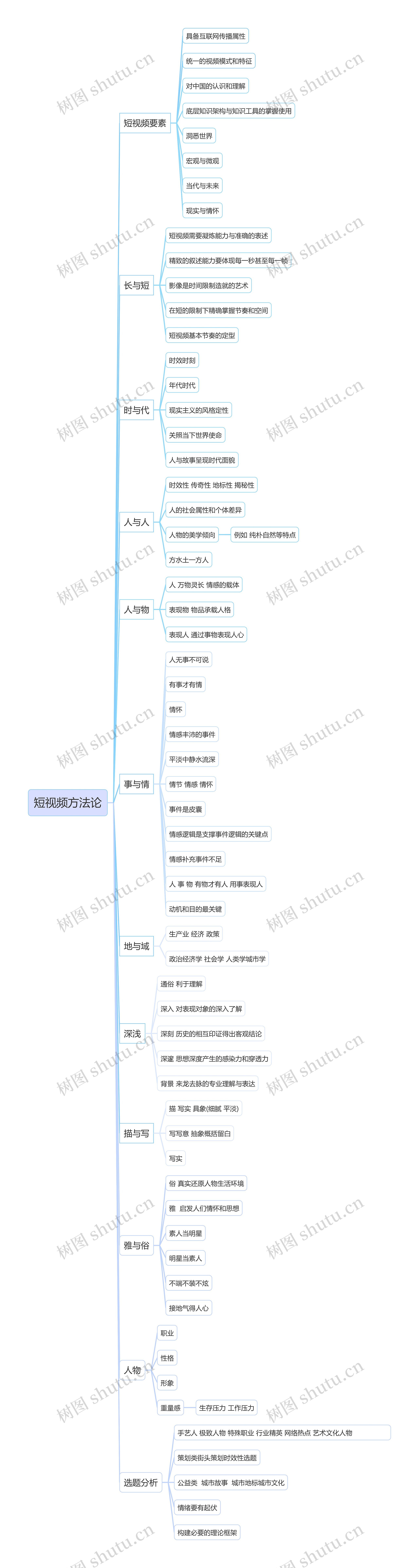 树图思维导图提供《互联网知识-短视频方法论》在线思维导图免费制作,点击“编辑”按钮,可对《互联网知识-短视频方法论》进行在线思维导图编辑,本思维导图属于思维导图模板主题,文件编号是:b06ec174ed5f9433b14efa8c2e446495