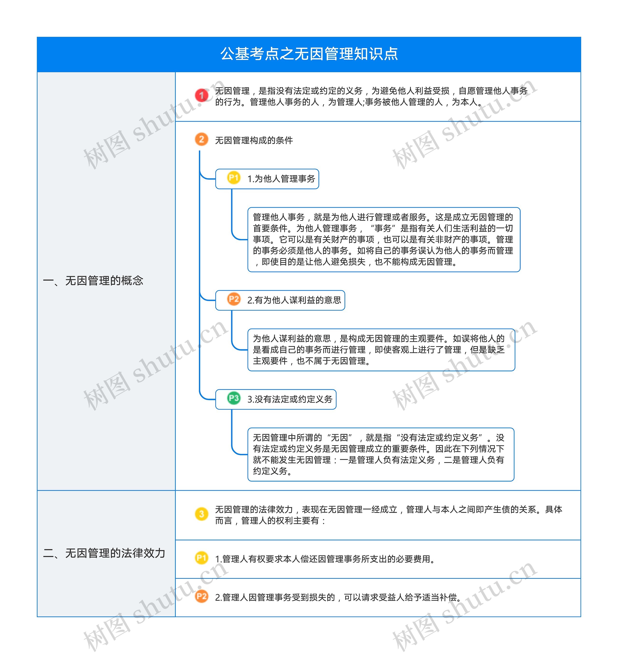 树图思维导图提供《公基考点之无因管理知识点表格图》在线思维导图免费制作,点击“编辑”按钮,可对《公基考点之无因管理知识点表格图》进行在线思维导图编辑,本思维导图属于思维导图模板主题,文件编号是:44fe11a7f5c49faf1bc6e33ef48d95b6