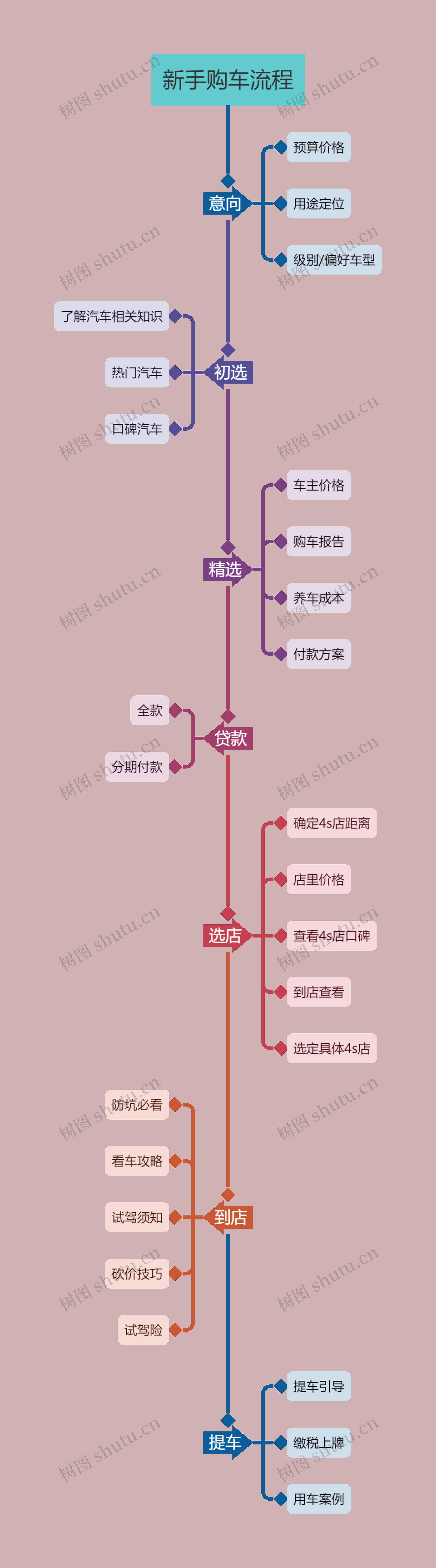 树图思维导图提供《新手购车流程》在线思维导图免费制作,点击“编辑”按钮,可对《新手购车流程》进行在线思维导图编辑,本思维导图属于思维导图模板主题,文件编号是:f77446701989e24b3fd6bfa8fbb1d66e