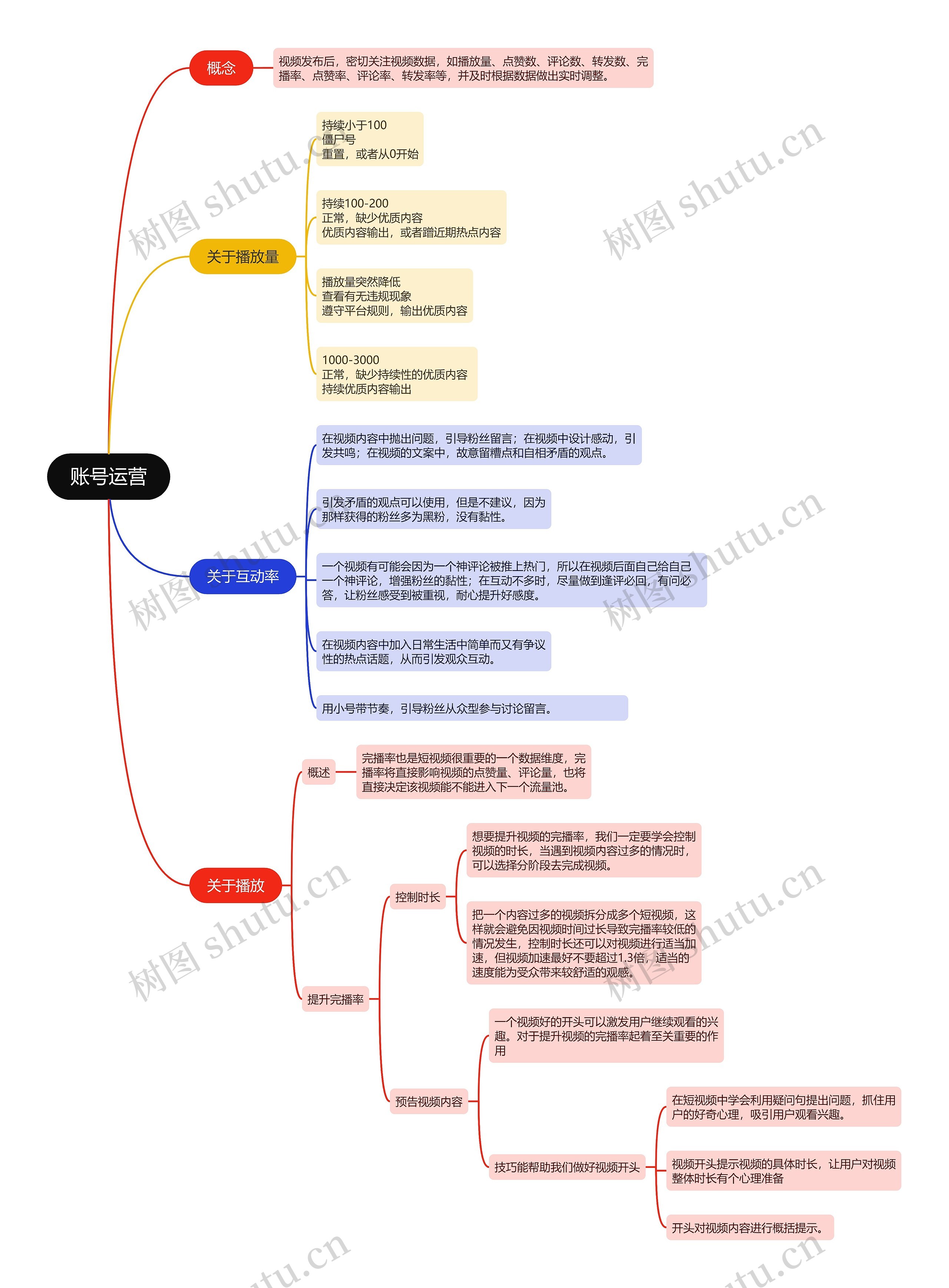 树图思维导图提供《短视频运营账号运营的思维导图》在线思维导图免费制作,点击“编辑”按钮,可对《短视频运营账号运营的思维导图》进行在线思维导图编辑,本思维导图属于思维导图模板主题,文件编号是:5a68d346b2e79c31ff55303f7b3db3a6