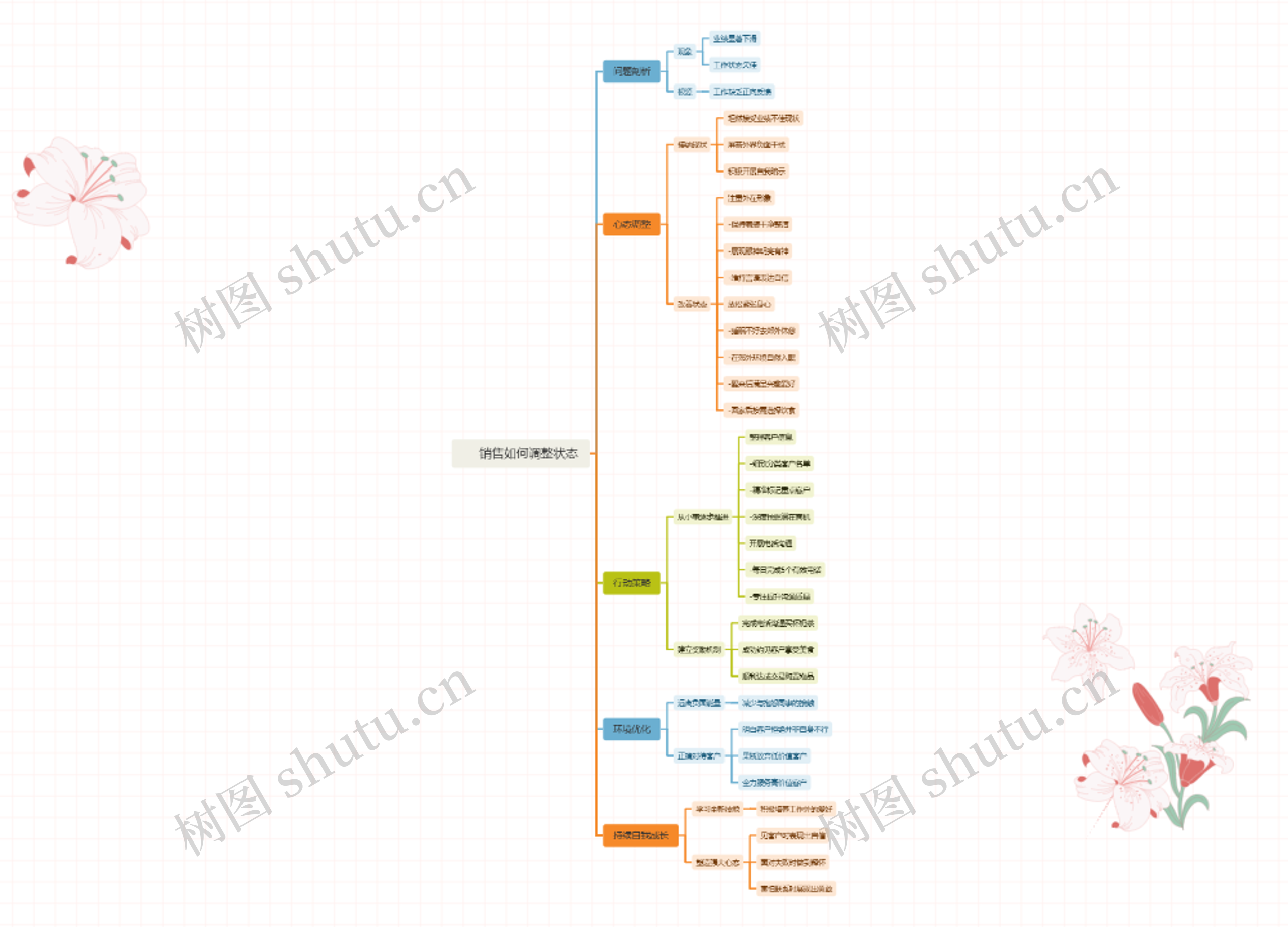 树图思维导图提供《销售如何调整状态》在线思维导图免费制作,点击“编辑”按钮,可对《销售如何调整状态》进行在线思维导图编辑,本思维导图属于思维导图模板主题,文件编号是:46152fd5d0a0ba294588608ae47a1163