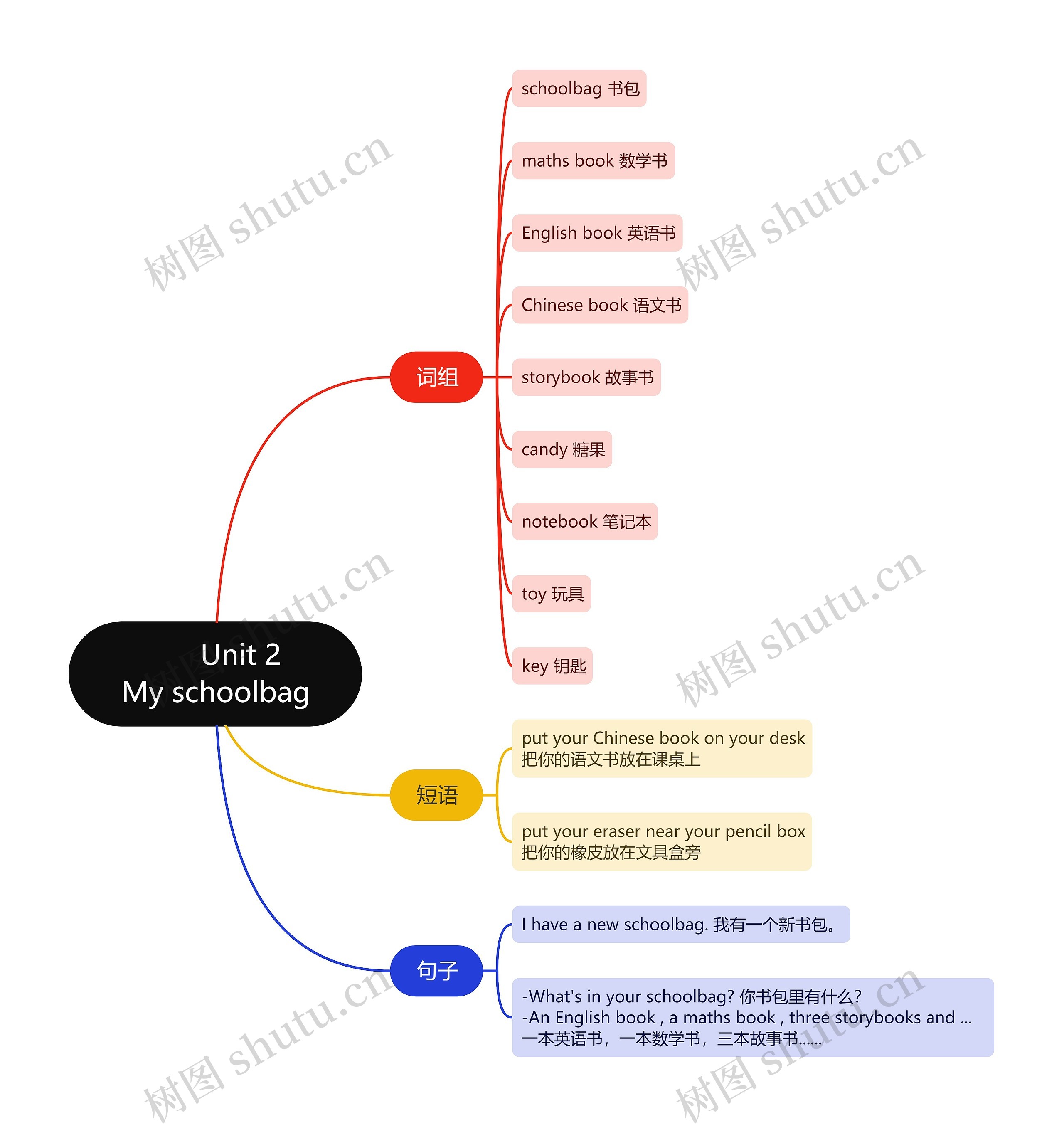 四年级英语上册第二单元《我的书包》,单词短语句子整理