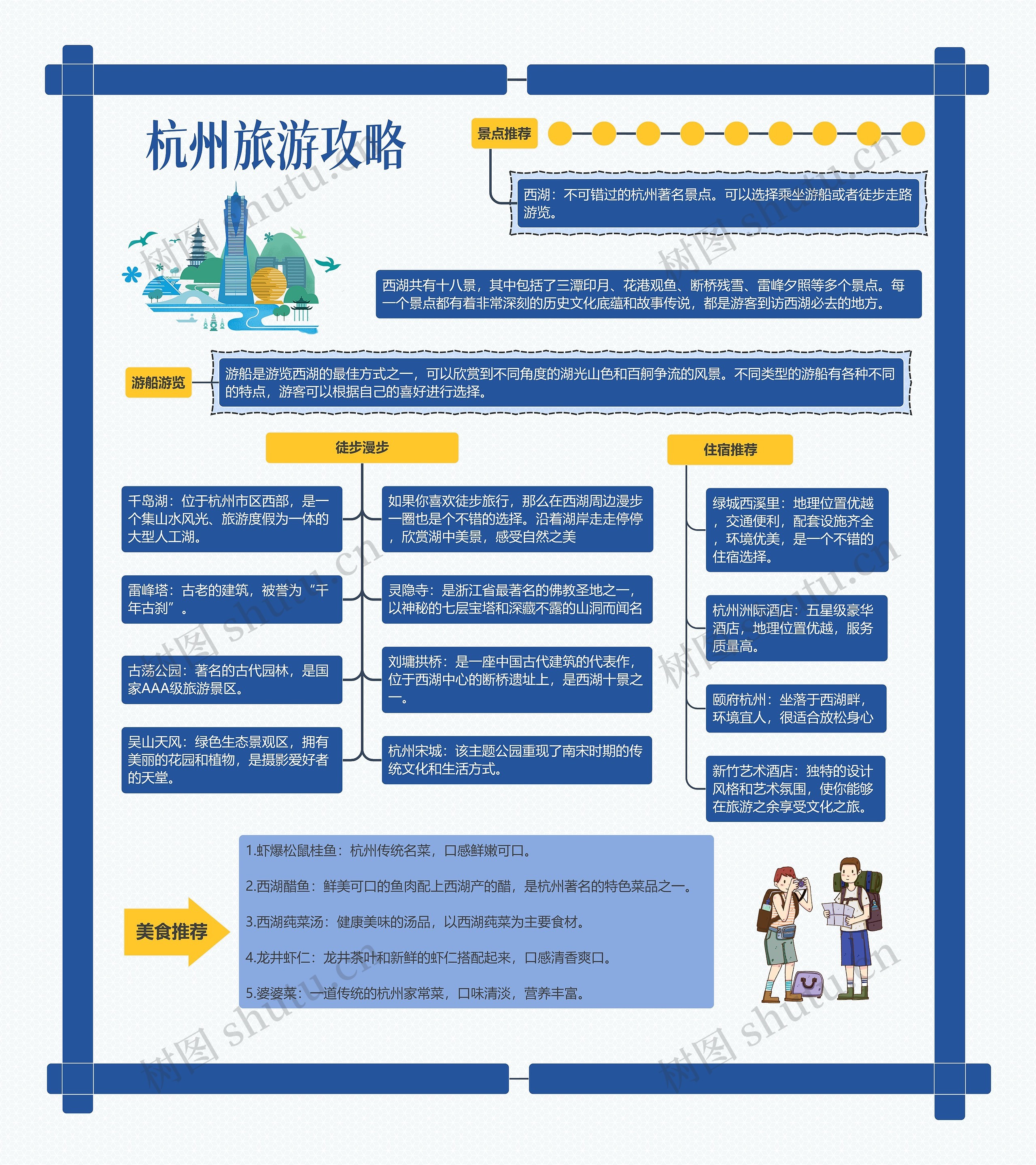 树图思维导图提供《杭州旅游攻略》在线思维导图免费制作,点击“编辑”按钮,可对《杭州旅游攻略》进行在线思维导图编辑,本思维导图属于思维导图模板主题,文件编号是:1fd94d4542dadf7424f35b5cc2361bfb