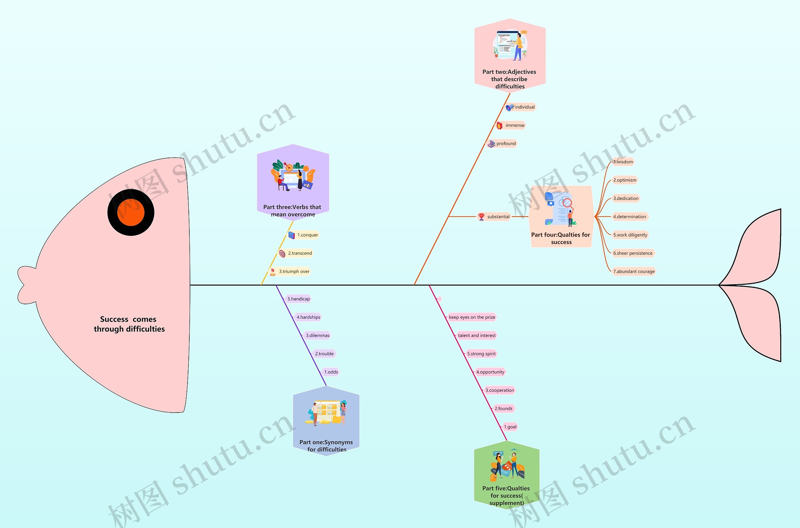 树图思维导图提供《成功来自困难自我提升脑图》在线思维导图免费制作,点击“编辑”按钮,可对《成功来自困难自我提升脑图》进行在线思维导图编辑,本思维导图属于思维导图模板主题,文件编号是:45350f65bd4f956b3e1d83c5b4ca5836