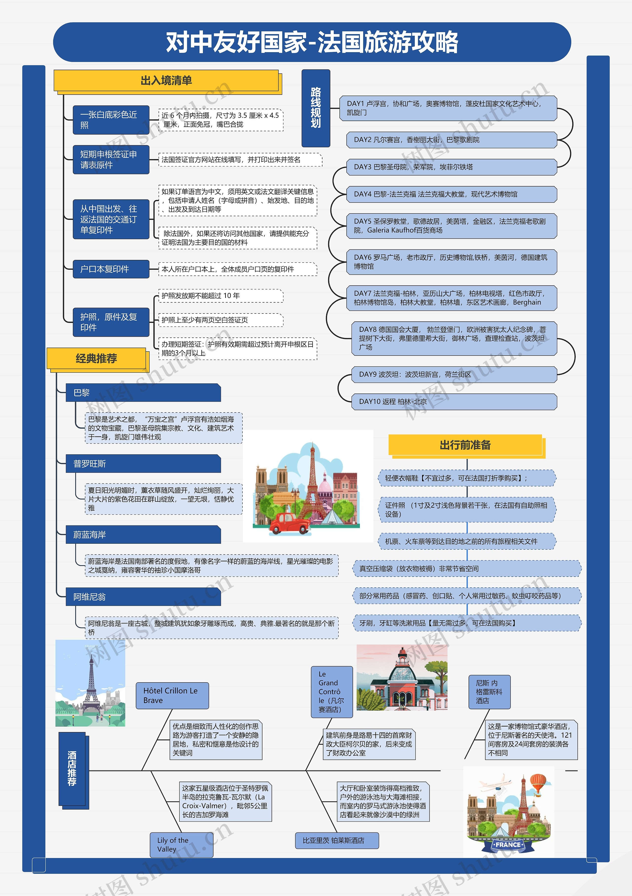 树图思维导图提供《对中友好国家-法国旅游攻略》在线思维导图免费制作,点击“编辑”按钮,可对《对中友好国家-法国旅游攻略》进行在线思维导图编辑,本思维导图属于思维导图模板主题,文件编号是:f5e87af076332eca3d4d943a4902b928