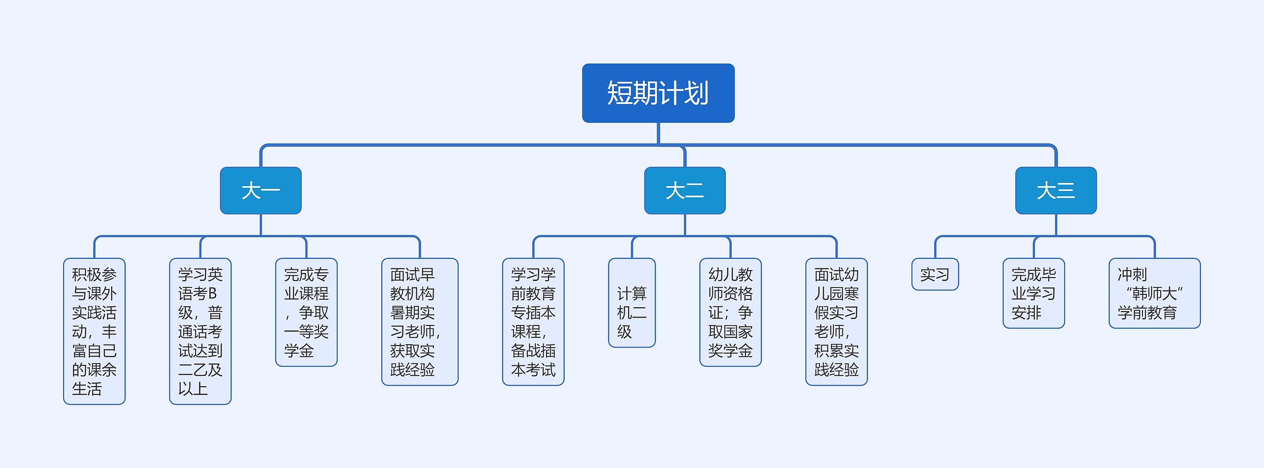 树图思维导图提供《短期计划》在线思维导图免费制作,点击“编辑”按钮,可对《短期计划》进行在线思维导图编辑,本思维导图属于思维导图模板主题,文件编号是:20db1bb129586d3c66b9c6b04fae54bb