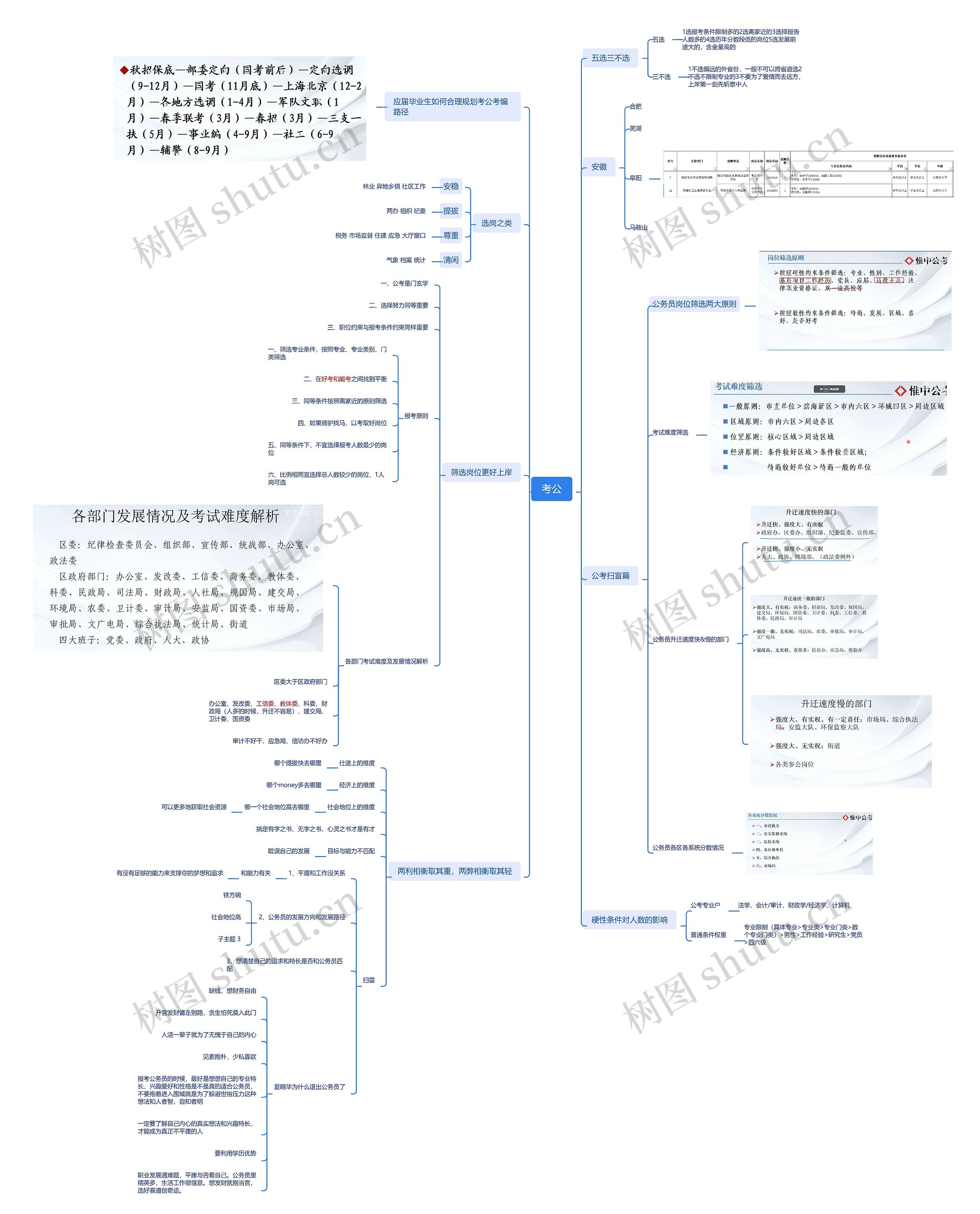本思维导图介绍了不同性格适合的岗位、各部门考试难度以及选岗原则、升迁快慢以及难易程度