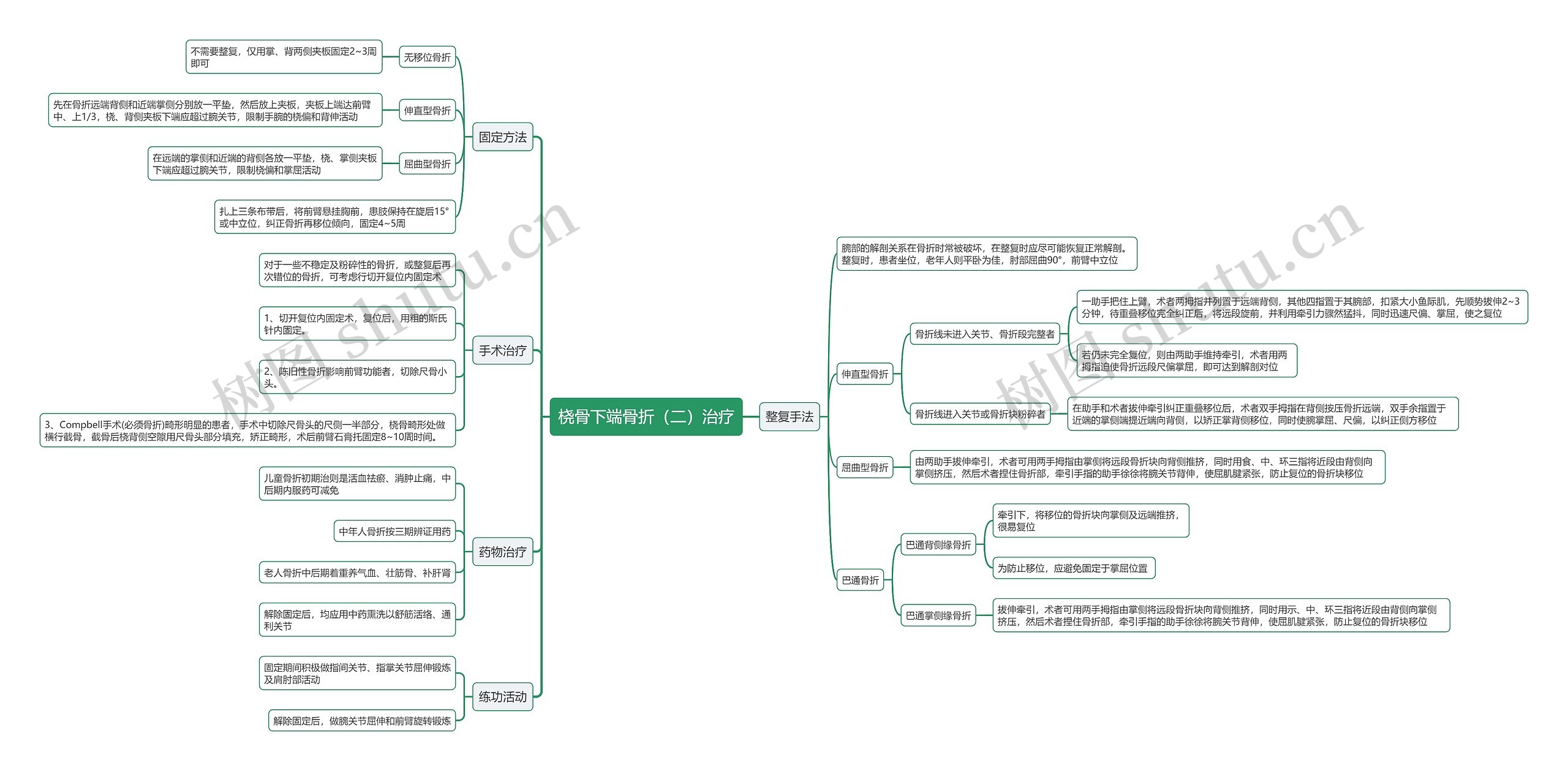 树图思维导图提供《桡骨下端骨折(二)治疗思维导图》在线思维导图免费制作,点击“编辑”按钮,可对《桡骨下端骨折(二)治疗思维导图》进行在线思维导图编辑,本思维导图属于思维导图模板主题,文件编号是:b1592537ea676becd55c350dc0fd19ce