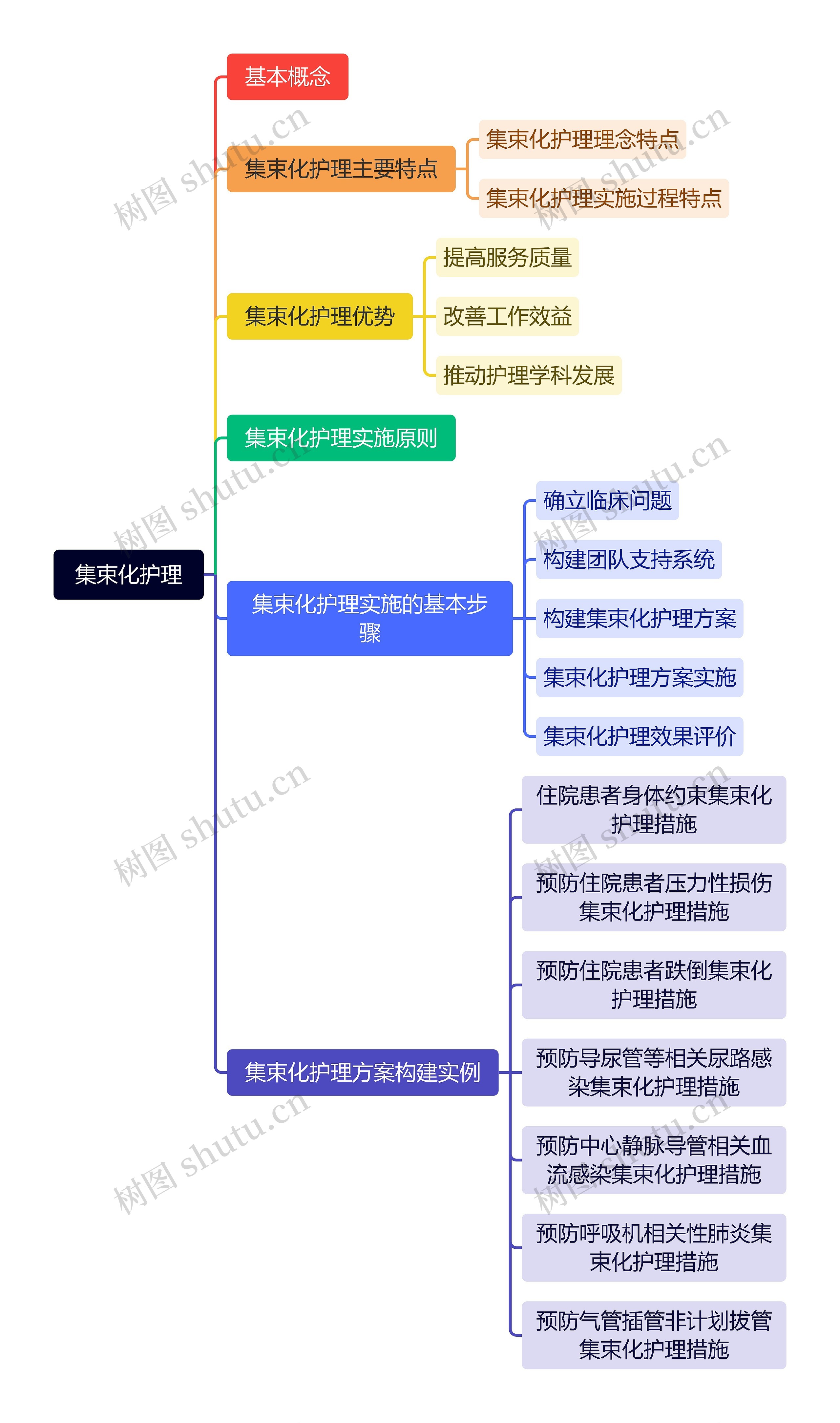树图思维导图提供《集束化护理》在线思维导图免费制作,点击“编辑”按钮,可对《集束化护理》进行在线思维导图编辑,本思维导图属于思维导图模板主题,文件编号是:650e7d5810f5a0df809caac0d414f465